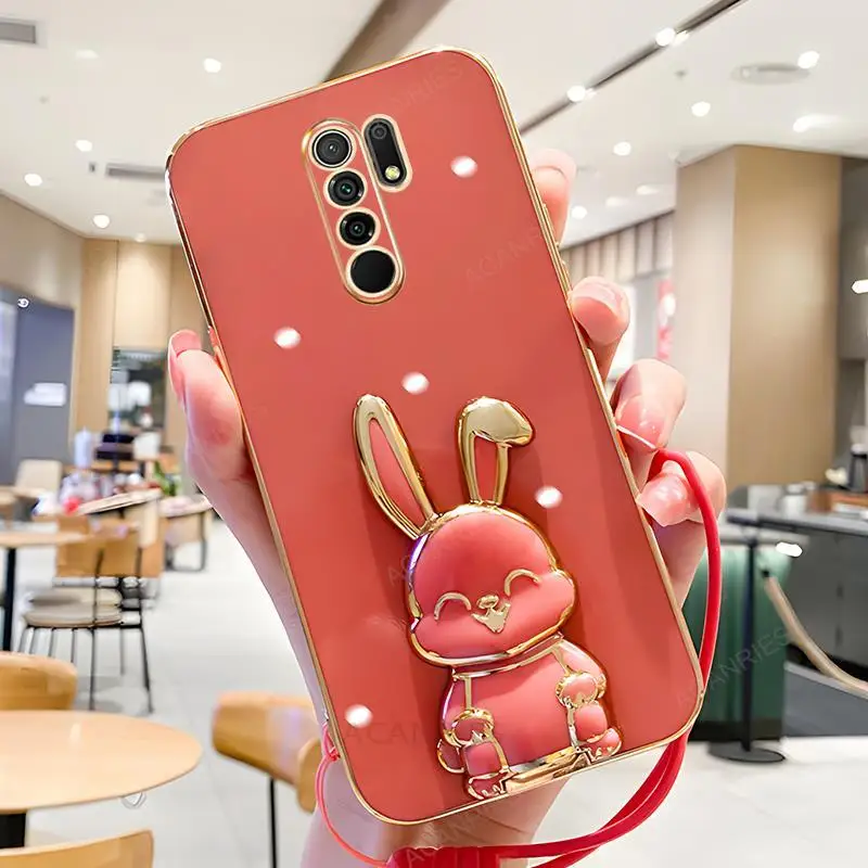 Comprar Funda de silicona con cordón para Xiaomi, carcasa chapada de lujo con soporte de conejo para Xiaomi Redmi Note 8 Pro 8t 7 7pro 9 Redmi9, 2021