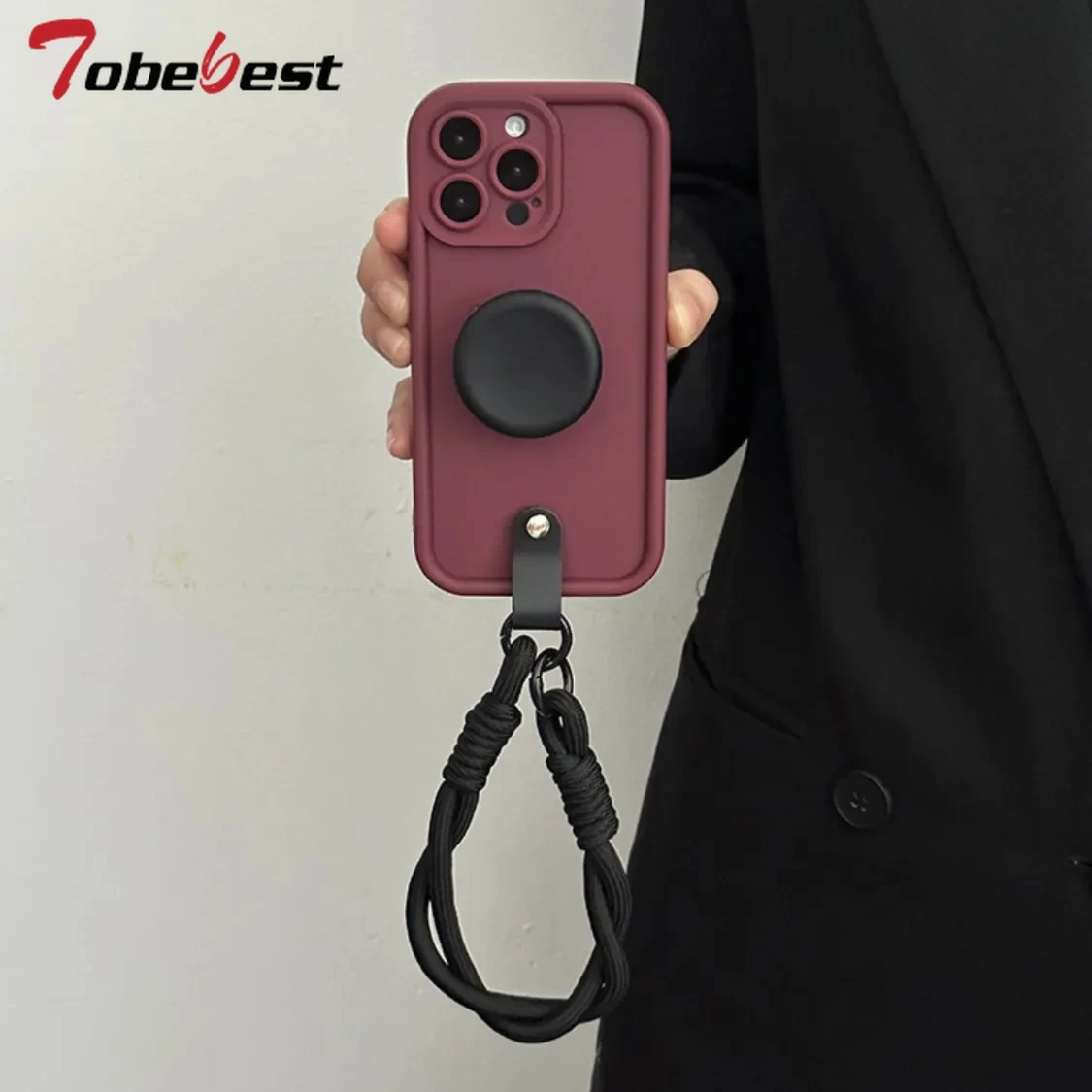 Correa de muñeca Lanyard Stand Phone Holder Funda de silicona para Huawei Pura 70 P60 P50 P40 P30 Pro Cover