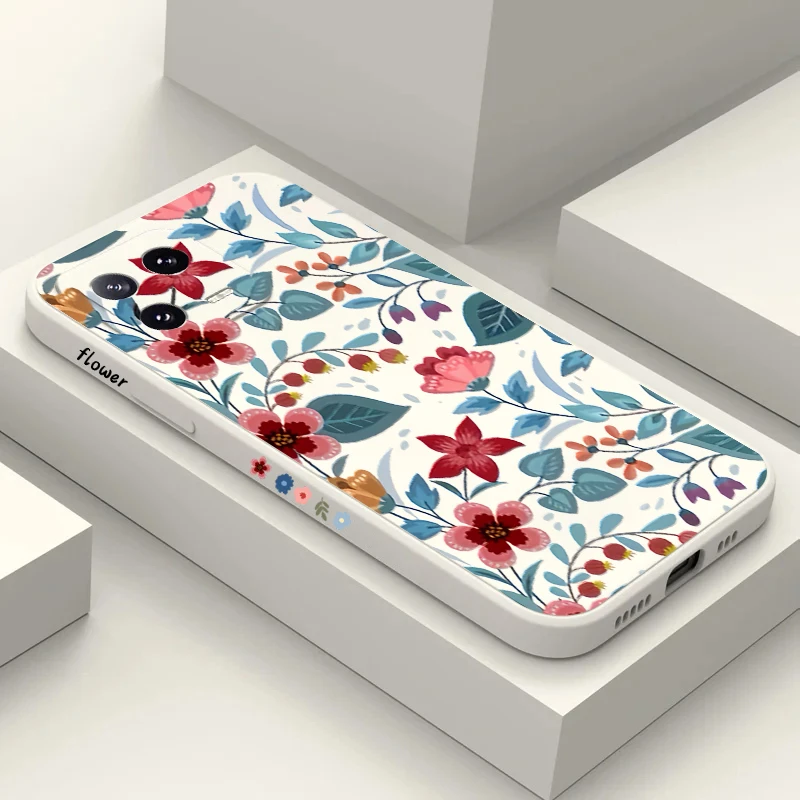 Funda de silicona cuadrada con flores bonitas para teléfono Xiaomi, carcasa para Poco M6 X5 X3 X6 F5 Pro C65 Mi 13 12 11 Lite 5G NE 14 13T 13 12T 12X 12