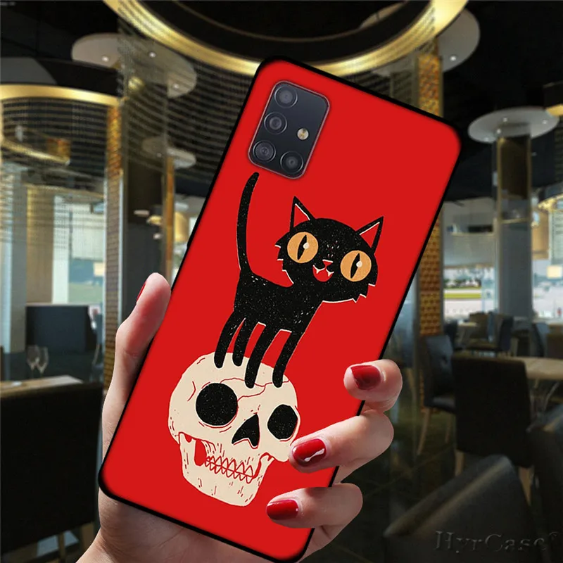 Divertido gato pisó cráneo máscara de silicona cubierta de la caja del teléfono para Samsung A51 A71 A01 A10 A11 A21S A30 A31 A40 A41 A50 A60 A70 A9 A7