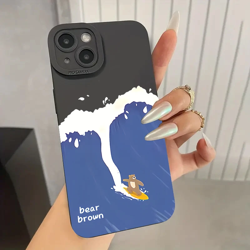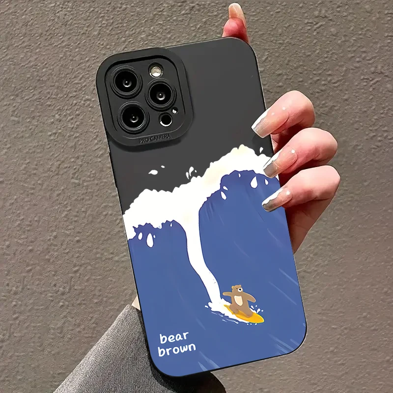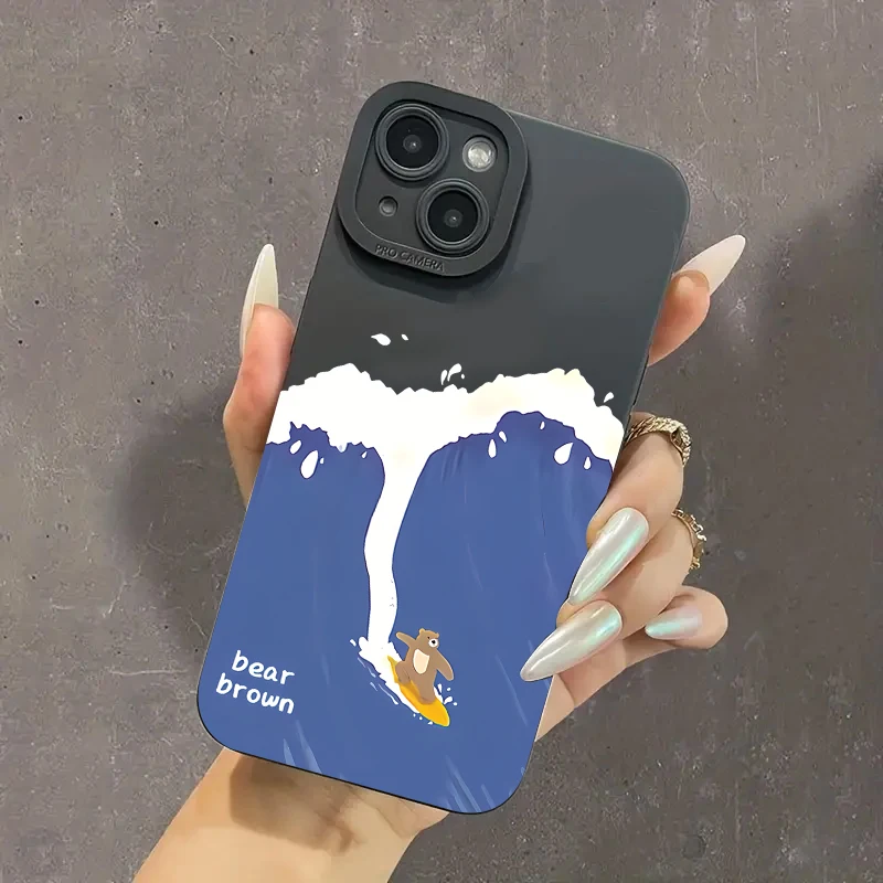 Funda de teléfono Ins con dibujos animados de oso surfista para iPhone 16 Pro Max 15 14 13 12 11 X XS XR 7 8 14 15 Plus SE 2020, funda blanda de silicona