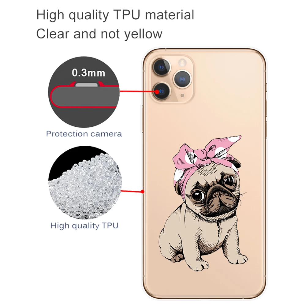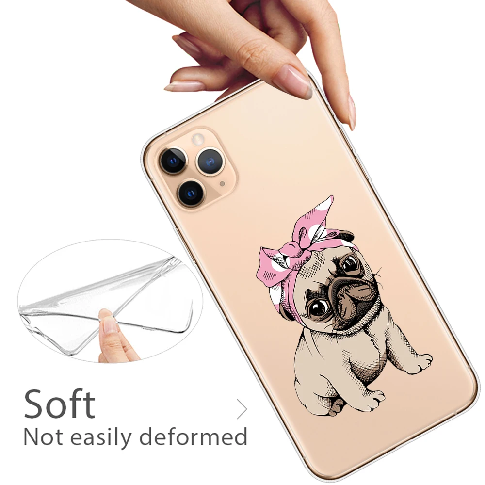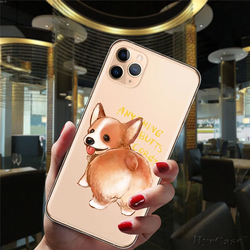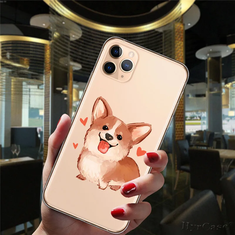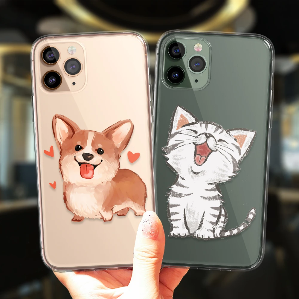 Para iPhone 11 12 13 Pro XS Max 8 7 Plus X XR 6 6S 5S SE 2020 13Mini caso transparente de dibujos animados lindo Corgi perro gato funda de silicona