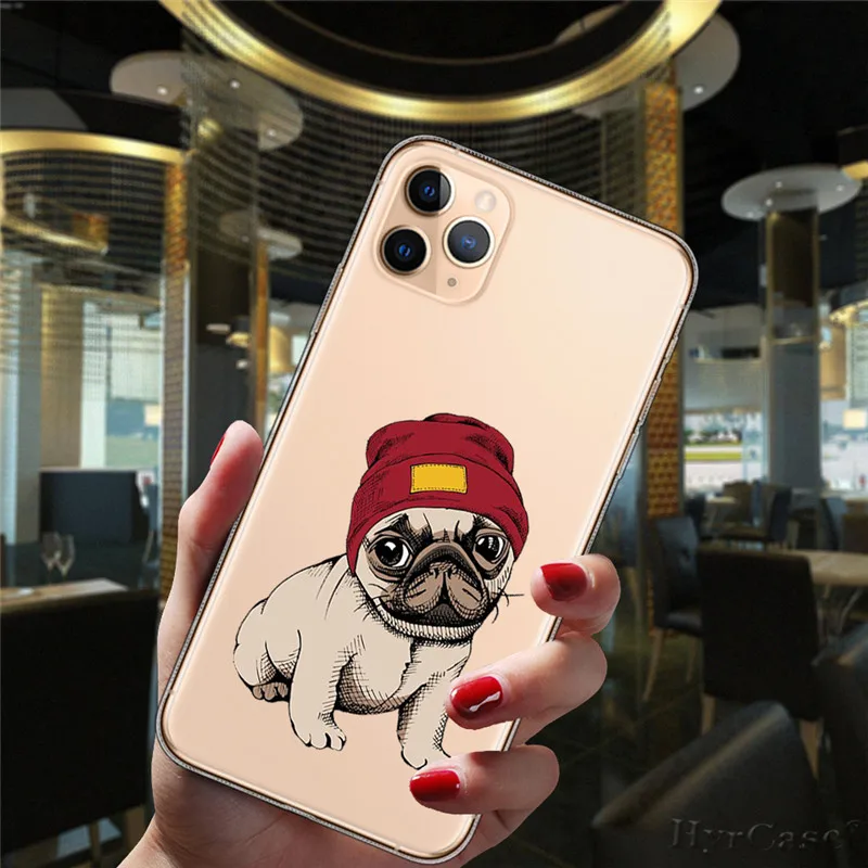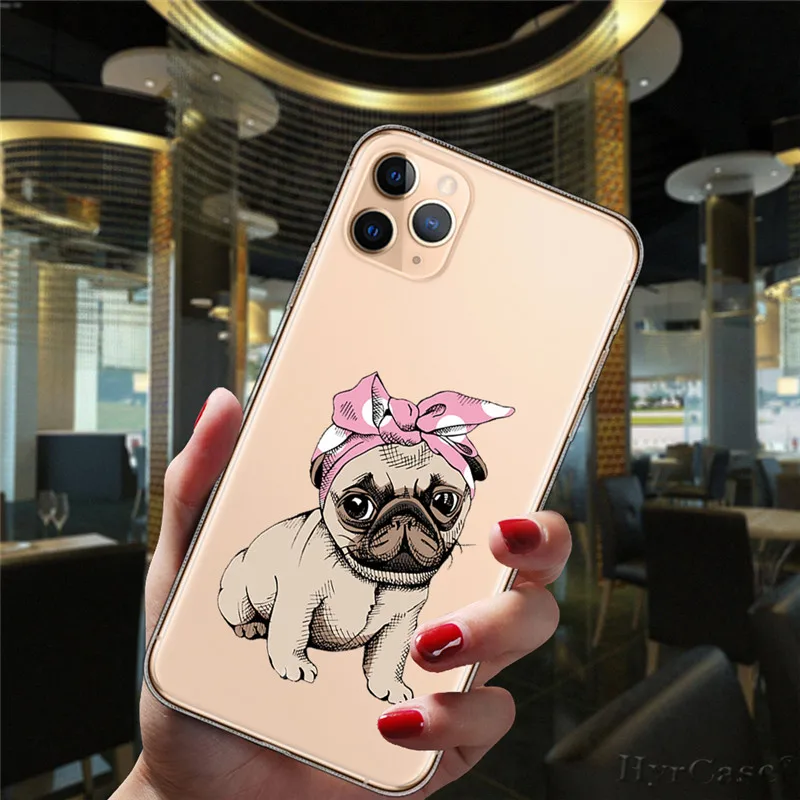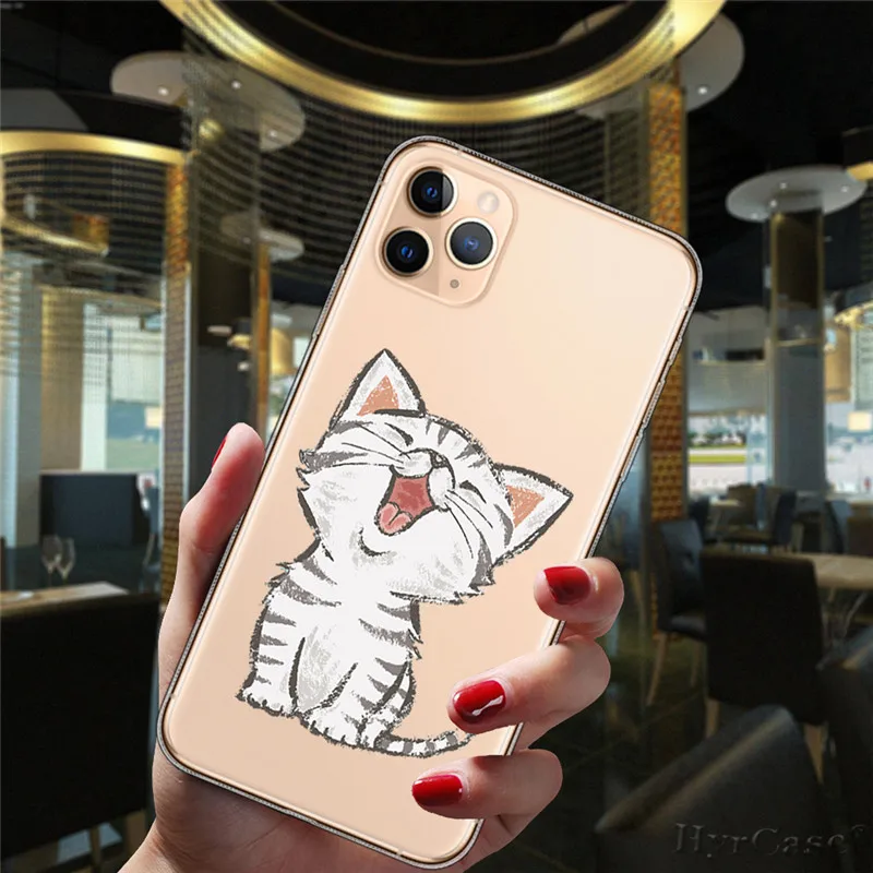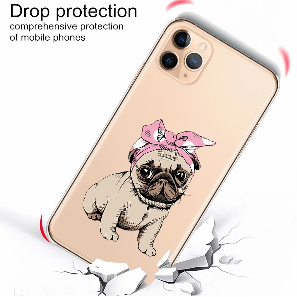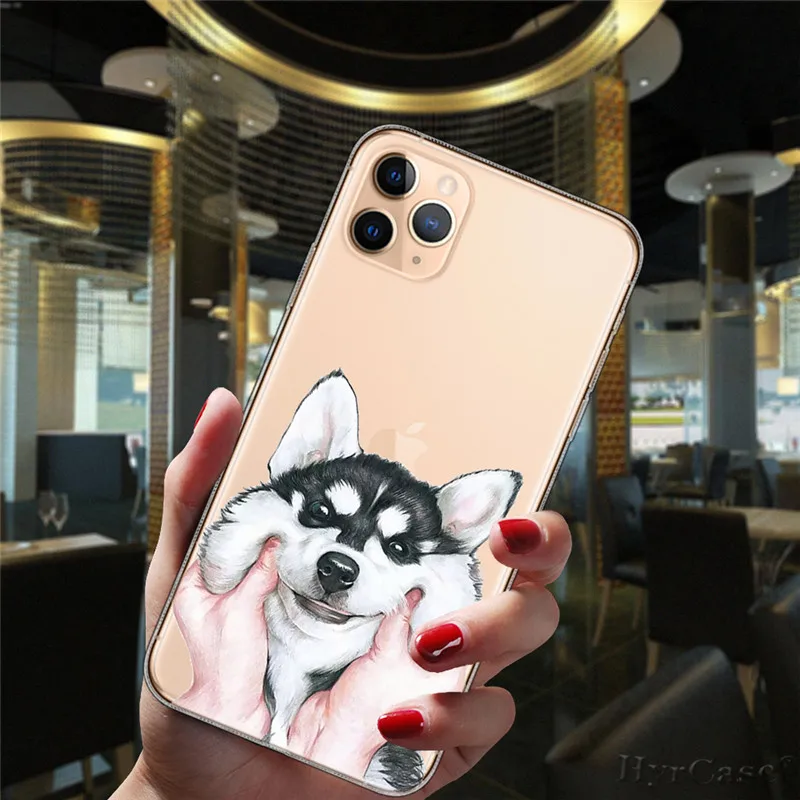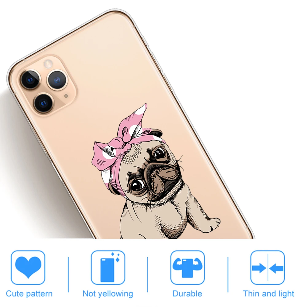 Para iPhone 11 12 13 Pro XS Max 8 7 Plus X XR 6 6S 5S SE 2020 13Mini caso transparente de dibujos animados lindo Corgi perro gato funda de silicona