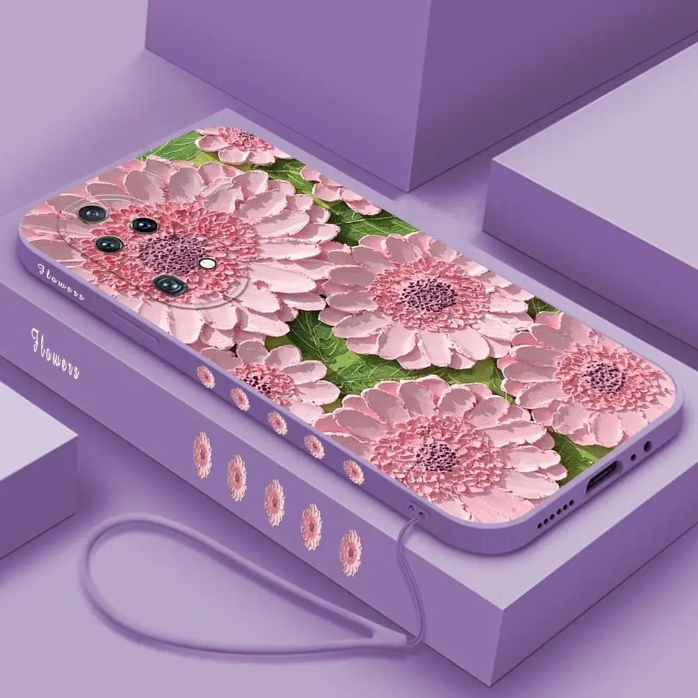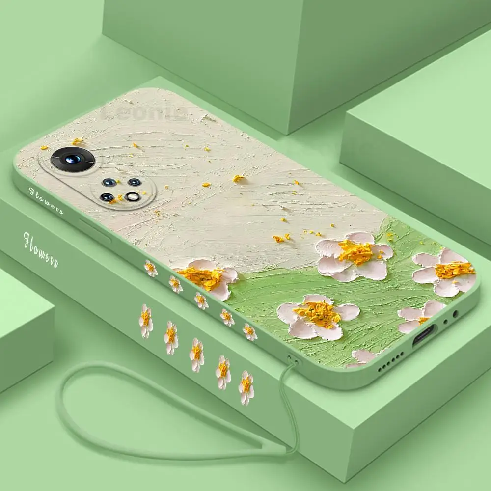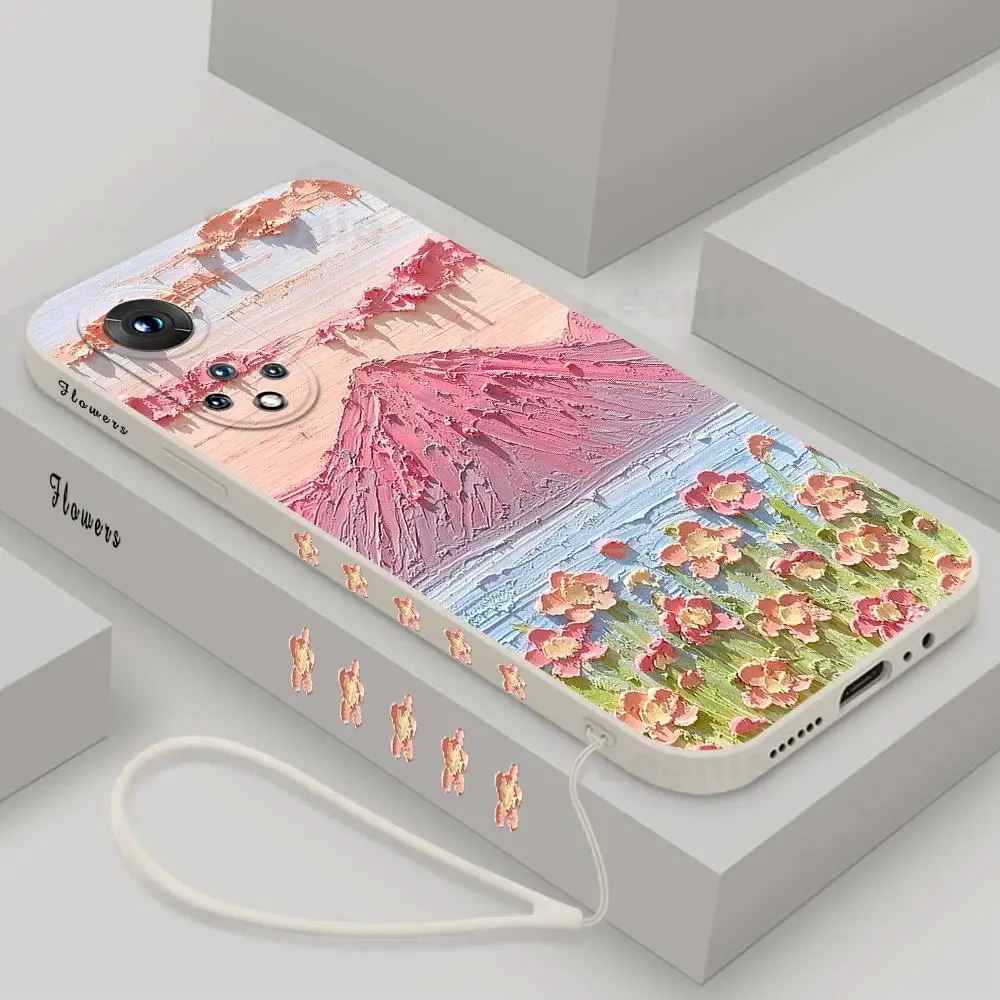 Funda de silicona con flores y nubes para Huawei P60 Pro Art 5g Honor 90 70 80 Pro GT 60 SE, funda de teléfono con estilo de pintura al óleo con cordón
