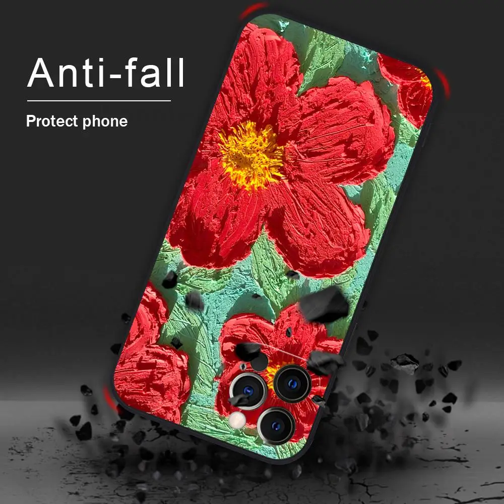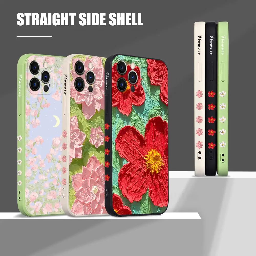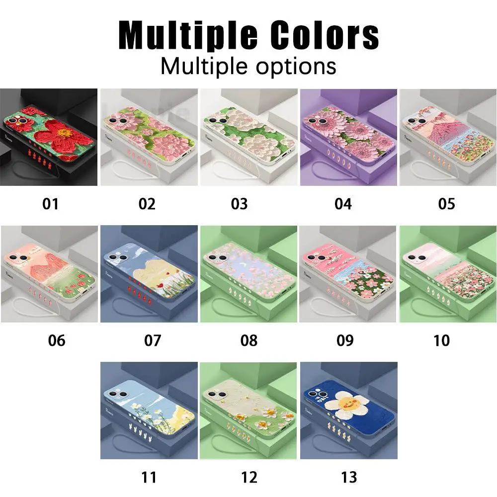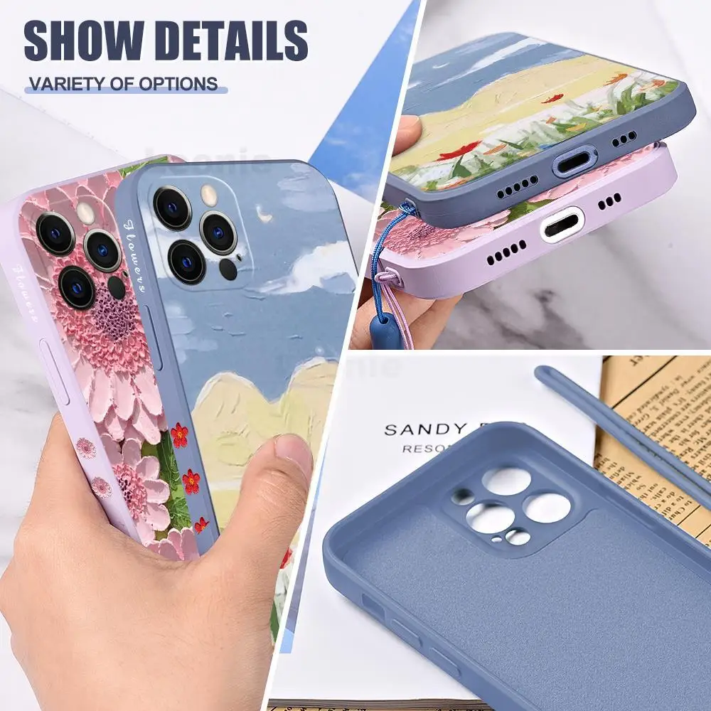 Nombre: funda de teléfono suave con flores Característica A: funda de teléfono de silicona líquida-forro de franela Característica B: con cordón de soporte de mano Característica C: Piel de bebé Tacto cómodo Característica D: a prueba de caídas, a prueba de golpes, a prueba de arañazos, protección de lentes