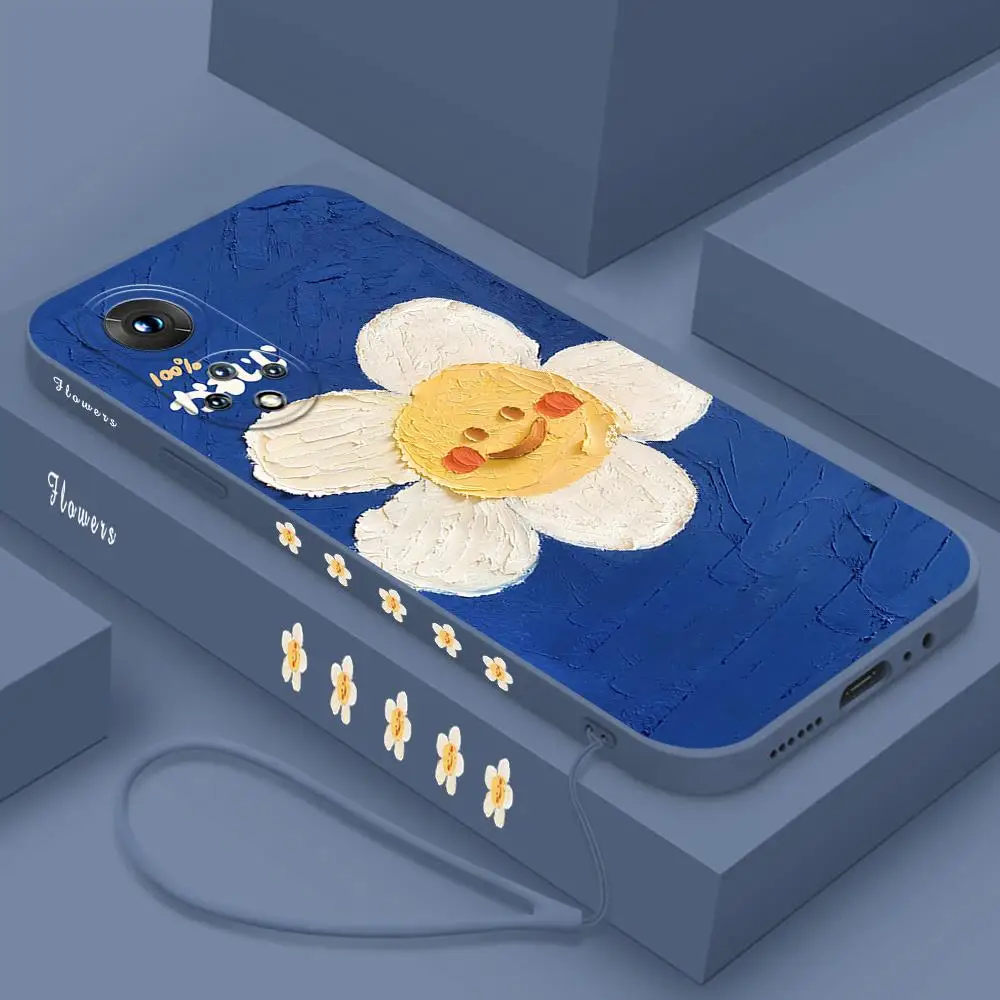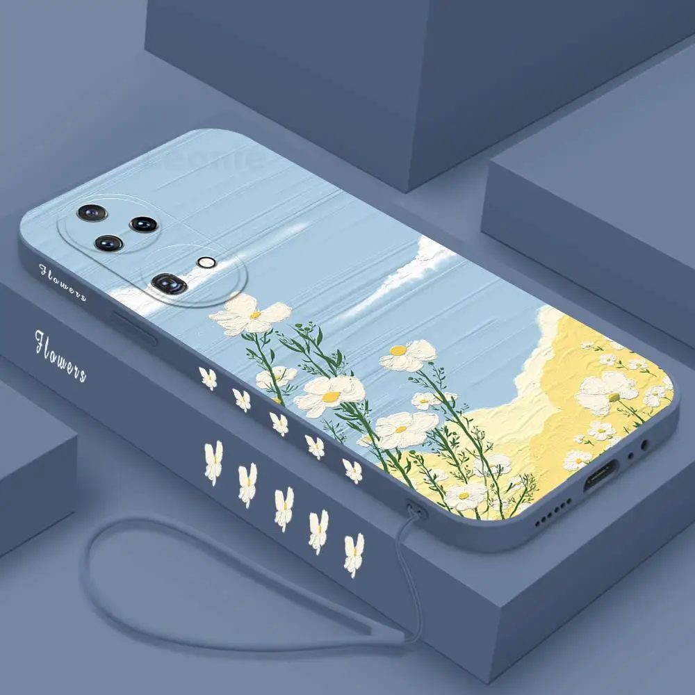 Funda de silicona con flores y nubes para Huawei P60 Pro Art 5g Honor 90 70 80 Pro GT 60 SE, funda de teléfono con estilo de pintura al óleo con cordón