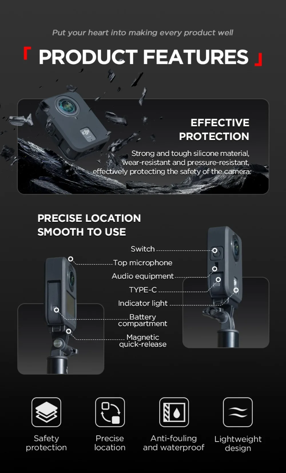 Funda de silicona para DJI Osmo 360, funda protectora para cámara de acción panorámica, accesorios antiarañazos