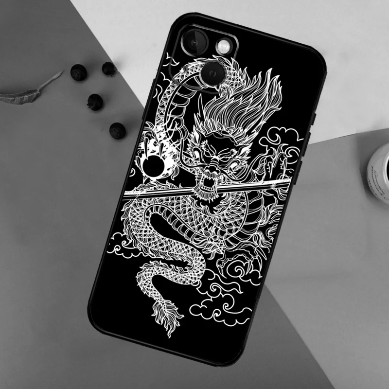 Funda de silicona de dragón chino para iPhone 17 15 14 13 12 11 Pro Max 16 Plus 12 13 Mini 16e 17 Air contraportada