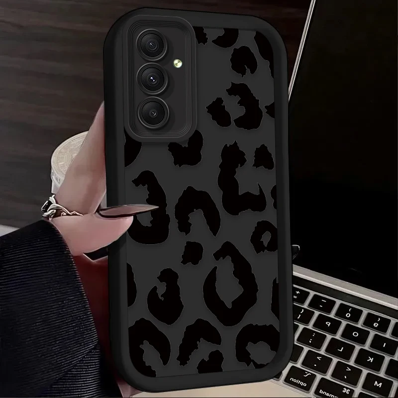 Comprar Funda de silicona con estampado de leopardo negro para Samsung Galaxy A55 A35 A24 A25 A15 A16 A06 A05 A05S A13 A23 A12 A22 A32 A52 A71 A51 4G