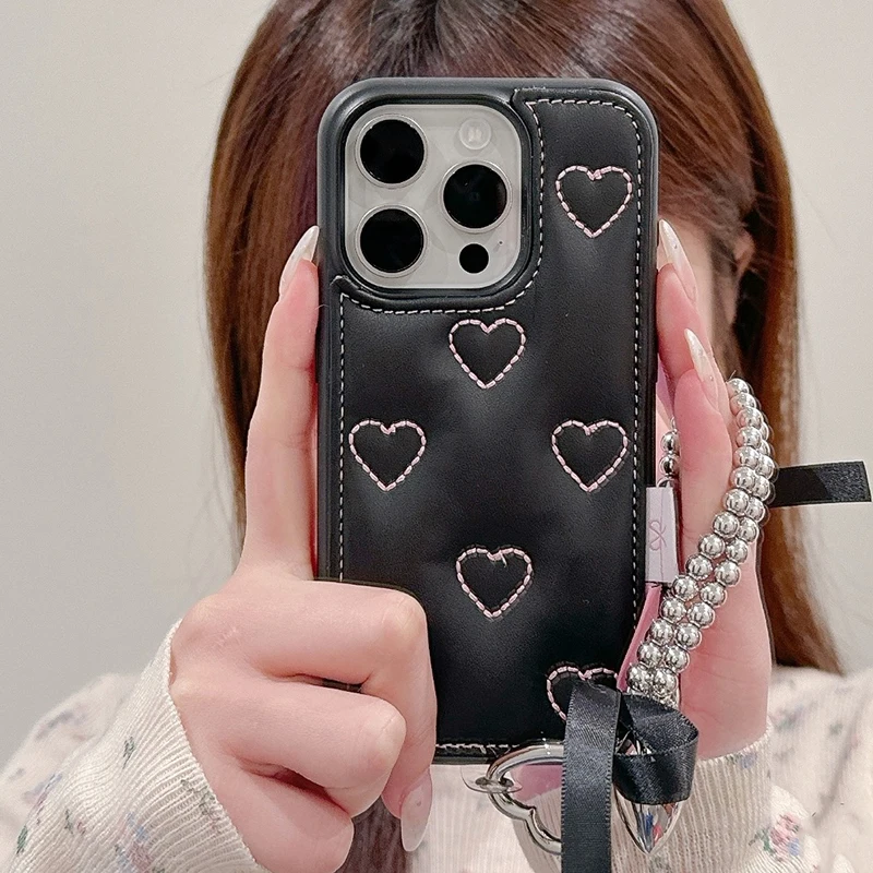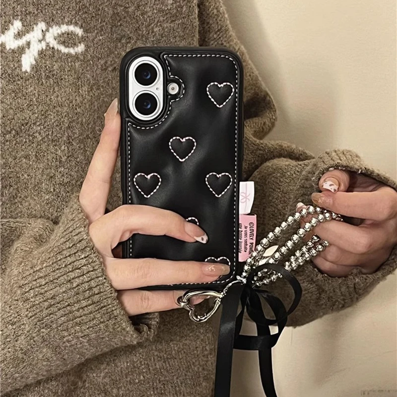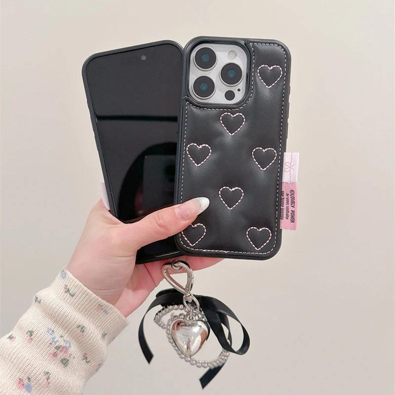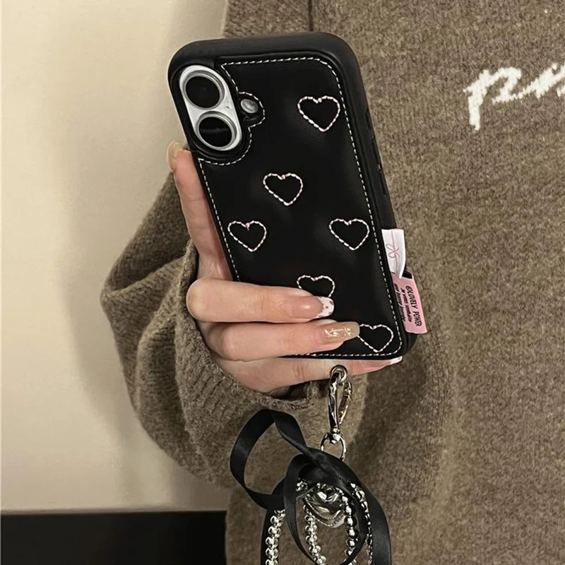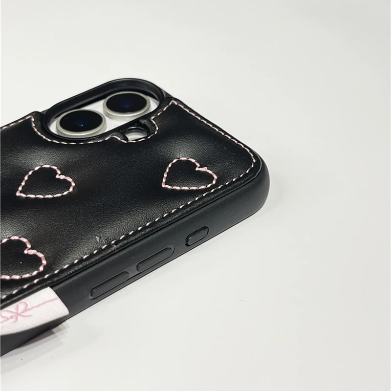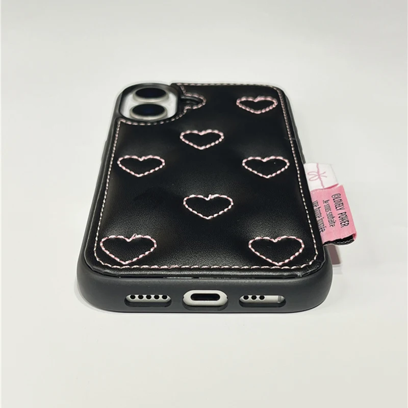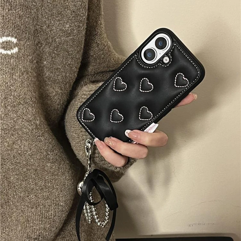 Stylish Love Heart Leather Down Jacket Silicone Case For iPhone 13 14 15 16 Pro Max Soft Shockproof Phone Back Cover