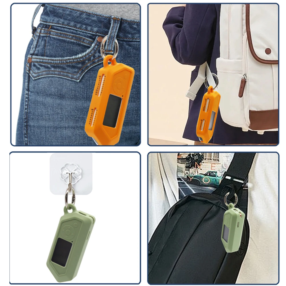 4. Portátil y antipérdida:Equipado con una hebilla colgante de metal, la cubierta protectora es fácil de usar y transportar. Se ajusta bien a su mano y se puede unir cómodamente a su bolso o pantalón cuando no esté en uso. El diseño ultrafino y ligero, junto con su tamaño compacto, hace que sea fácil de transportar y almacenar, reduciendo el riesgo de pérdida.