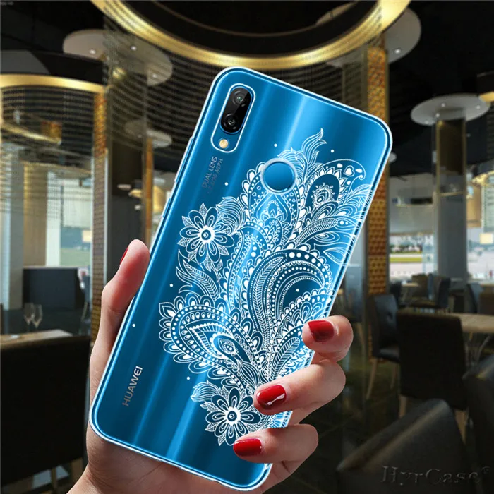 Sexy funda Floral de silicona para Huawei P40 Lite E Pro Mandala de encaje flor transparente suave TPU cubierta para Huawei P9 P10 P20 P30 Lite Pro