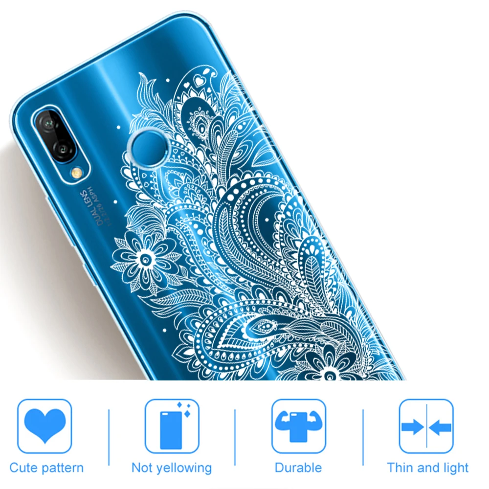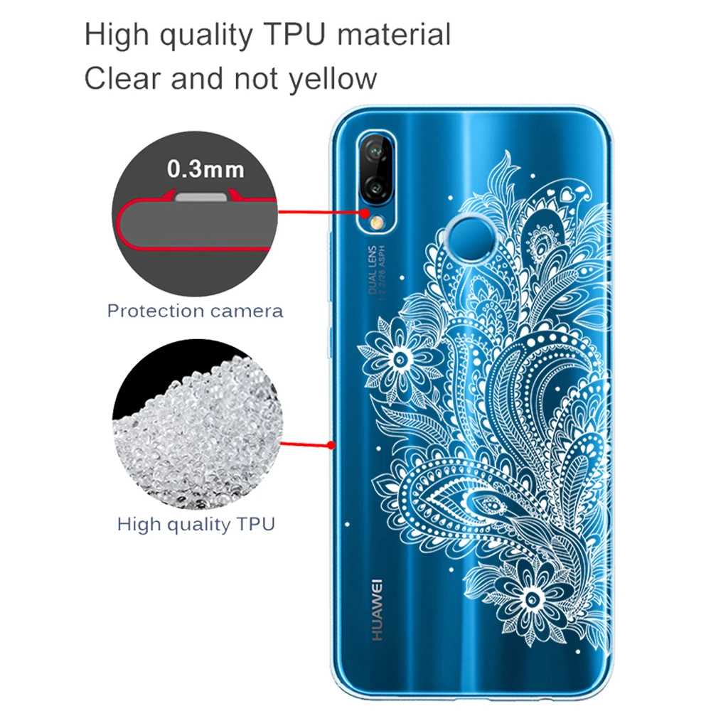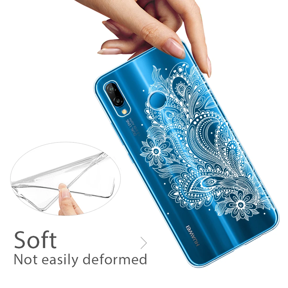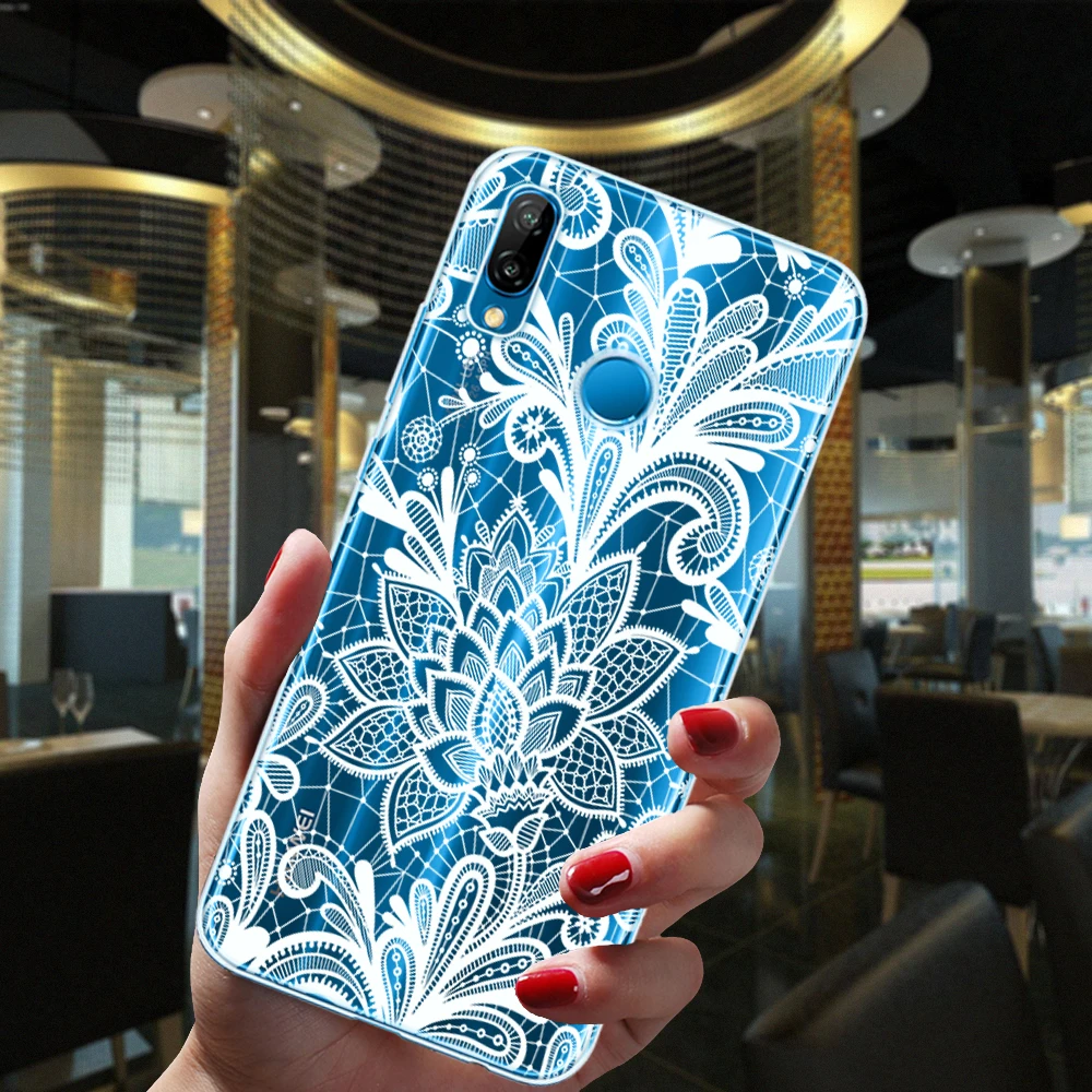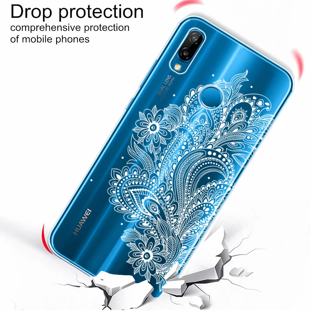 Sexy funda Floral de silicona para Huawei P40 Lite E Pro Mandala de encaje flor transparente suave TPU cubierta para Huawei P9 P10 P20 P30 Lite Pro