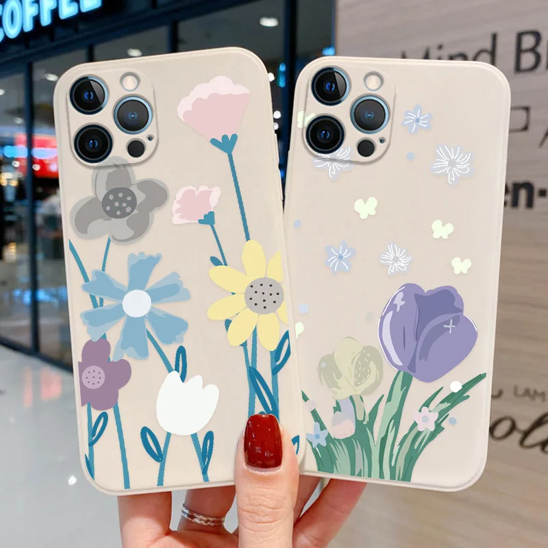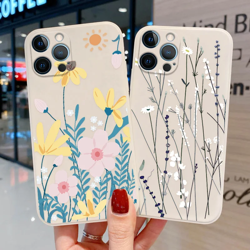 Comprar Funda de silicona con flores para iPhone, protector de lente para modelos 13 Pro Max, 15, 11, 14, 13, 12 Mini, XR, Xs, 7, 8, 6s Plus, SE 2020, 15Pro Max, 13 Pro Max