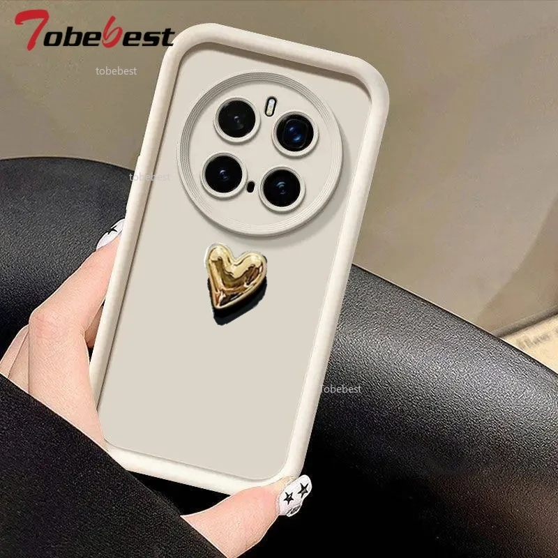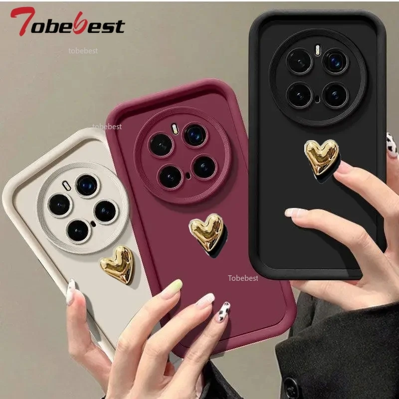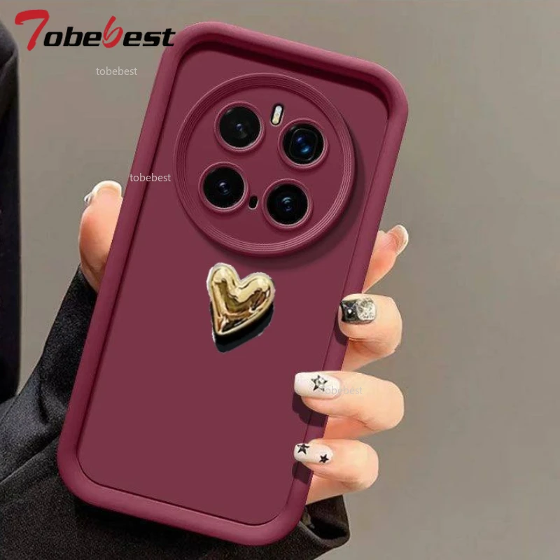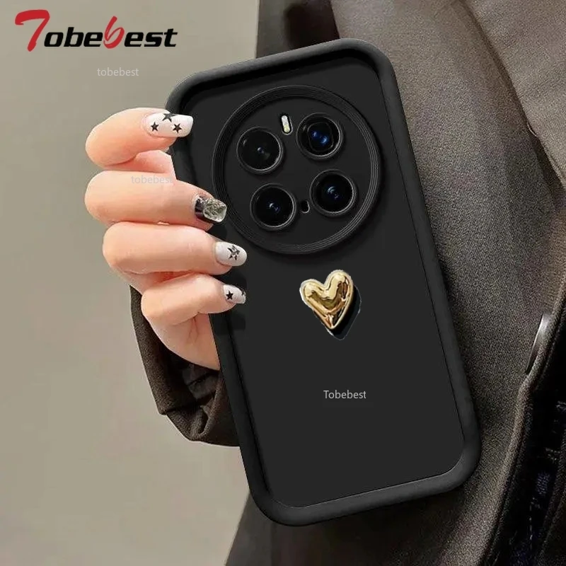 Funda de silicona con forma de corazón dorado 3D para Huawei Honor Magic 7 Lite 6 5 4 3 Pro, funda suave de color sólido