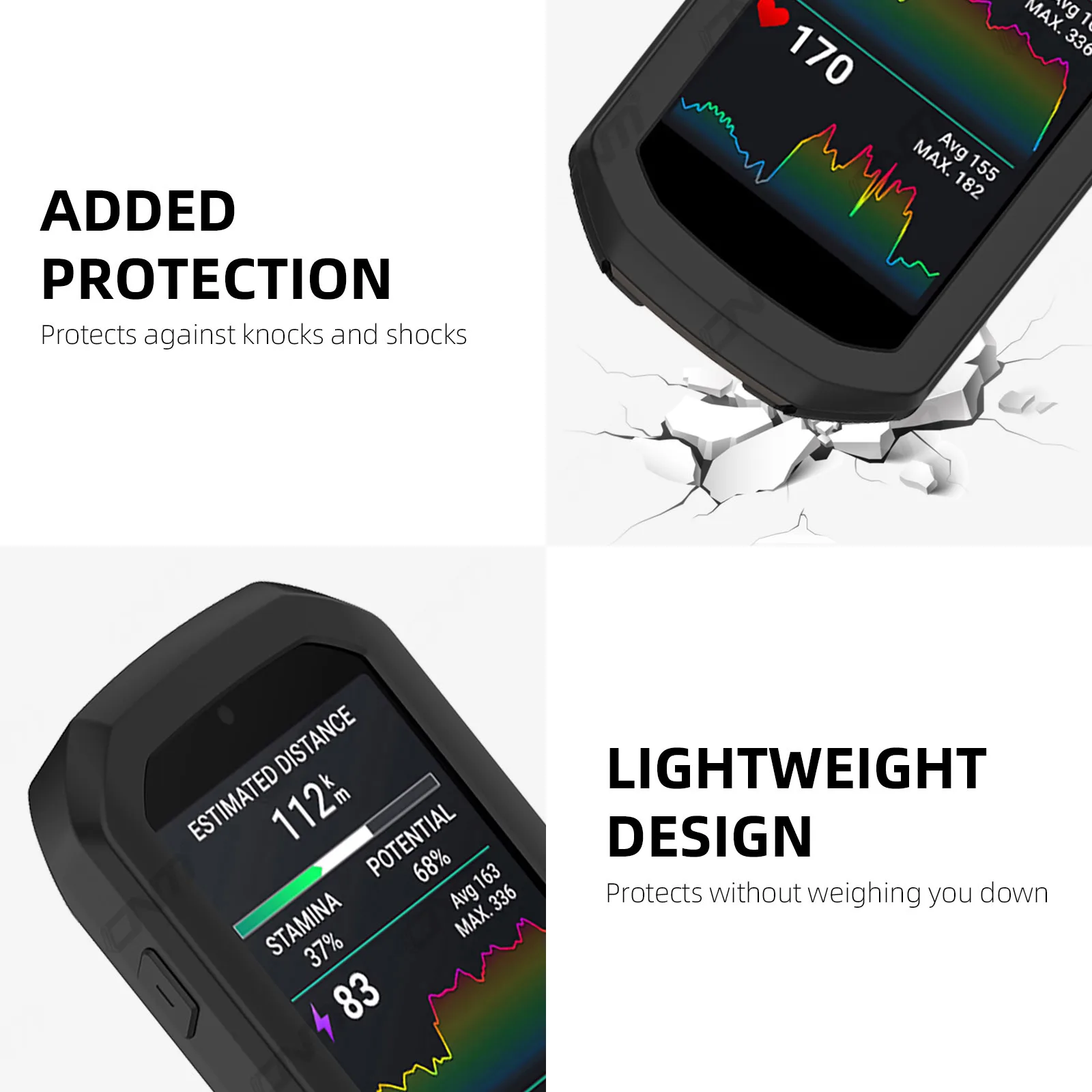 Strong structure provides 360° full body protection for edge. Raised edges design ensures extra protection for the screen, whether you are cycling, hiking or practicing any other outdoor activity.
