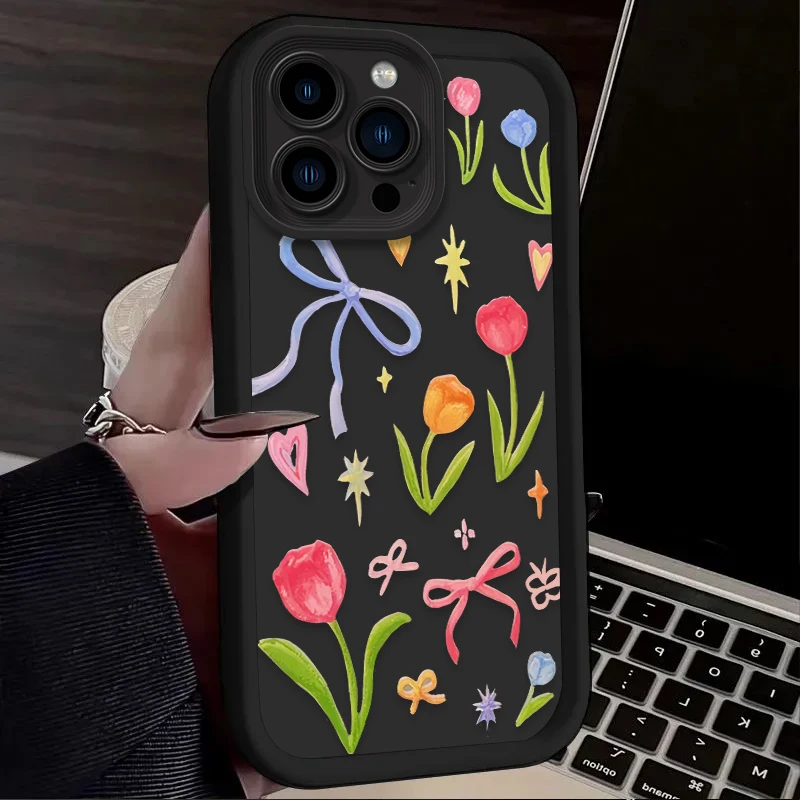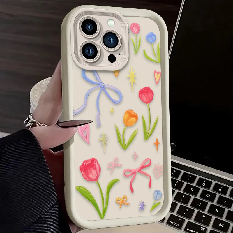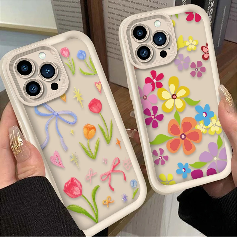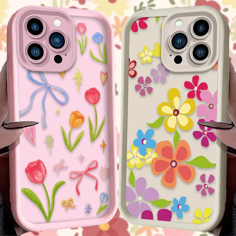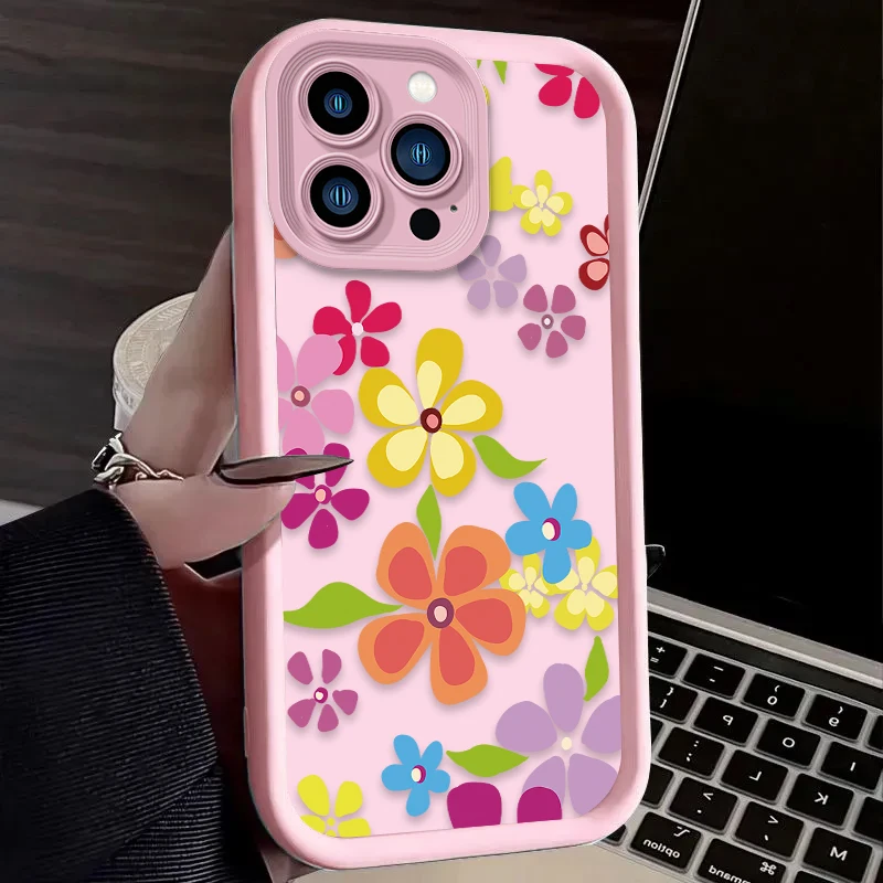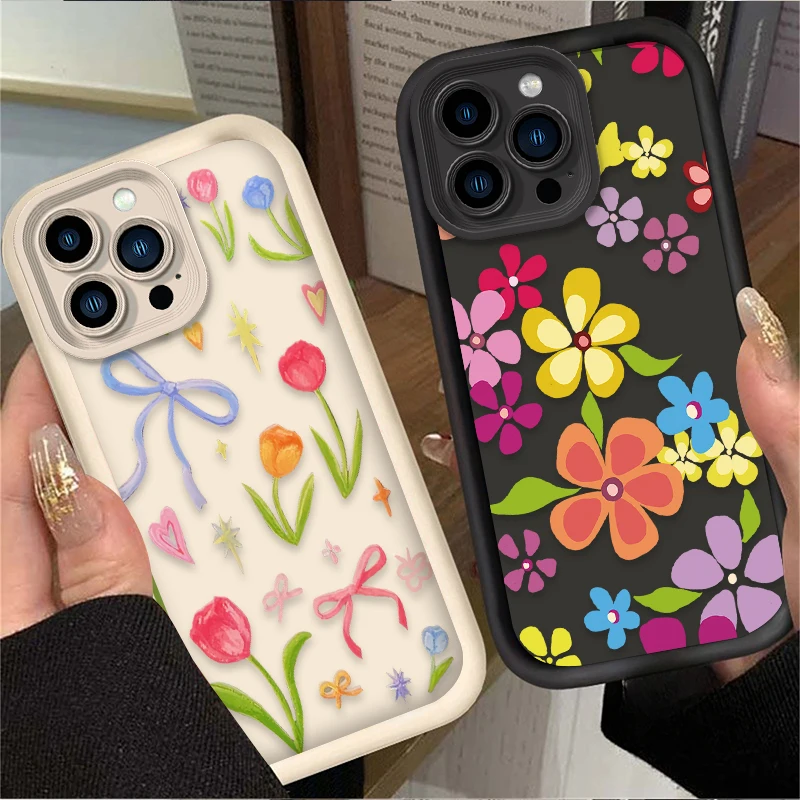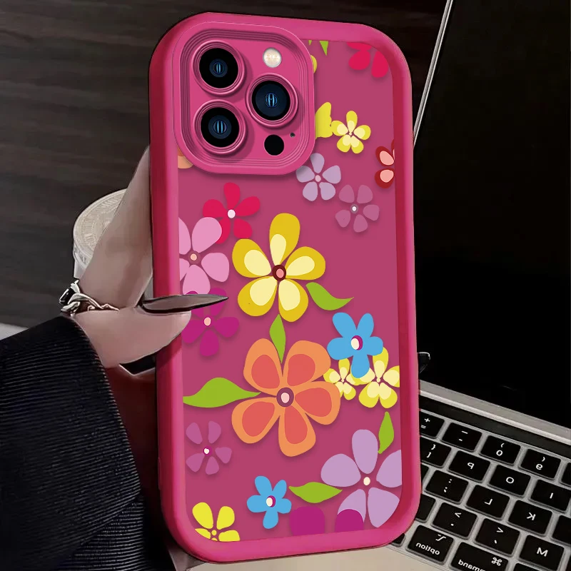 Comprar Funda de silicona con gráfico de flores de Color para iPhone 16 15 14 13 12 11 Pro Max X XS X S Max XR SE 2020 7 8 Plus iphone16 contraportada