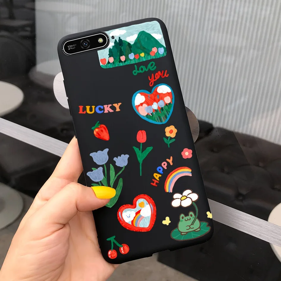Comprar Funda de silicona para Huawei Y6 2018, protector suave con diseño de gato y flores, ATU-L21 de 5,7 pulgadas, parachoques trasero, 2018 ATU-L31
