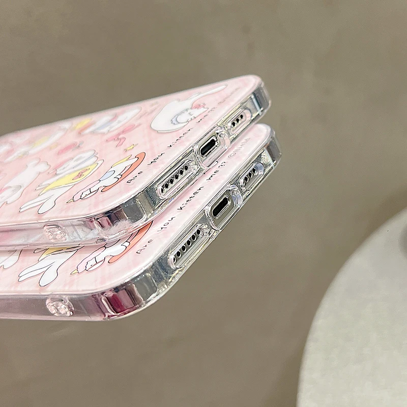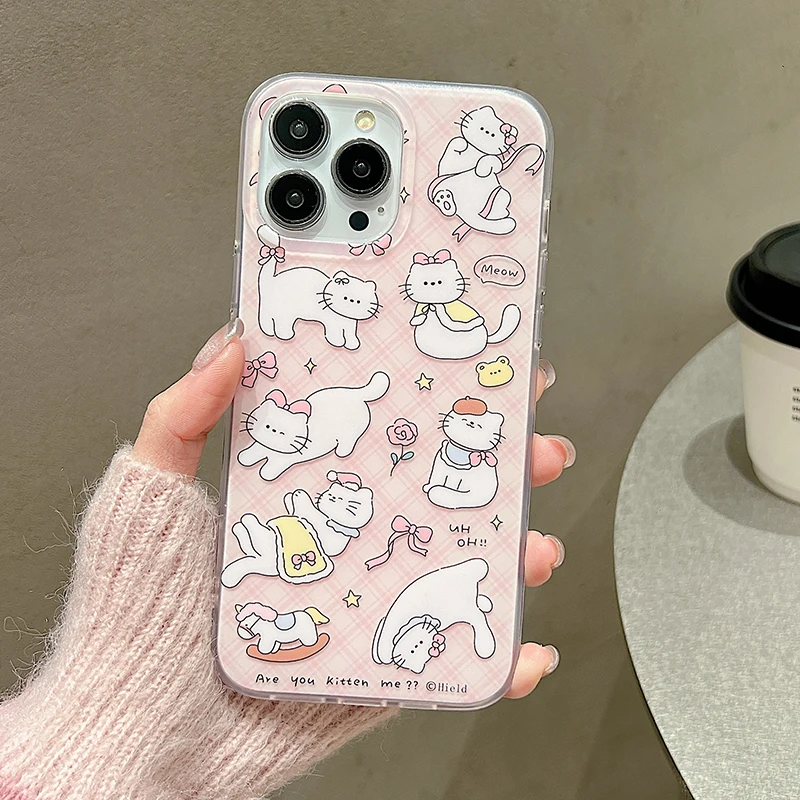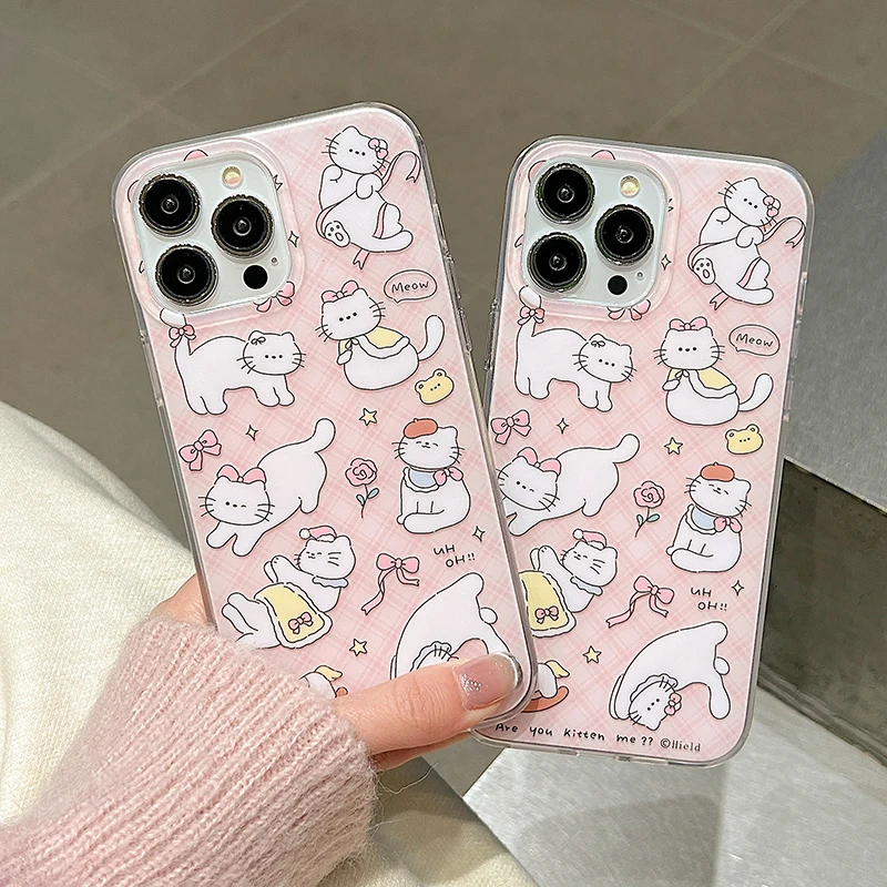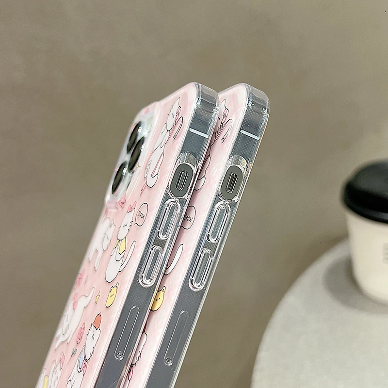 Comprar Funda de silicona IMD para iPhone, carcasa a prueba de golpes, gato blanco, rosa, 11, 12, 13, 14, 15 Pro Max, 15 Plus