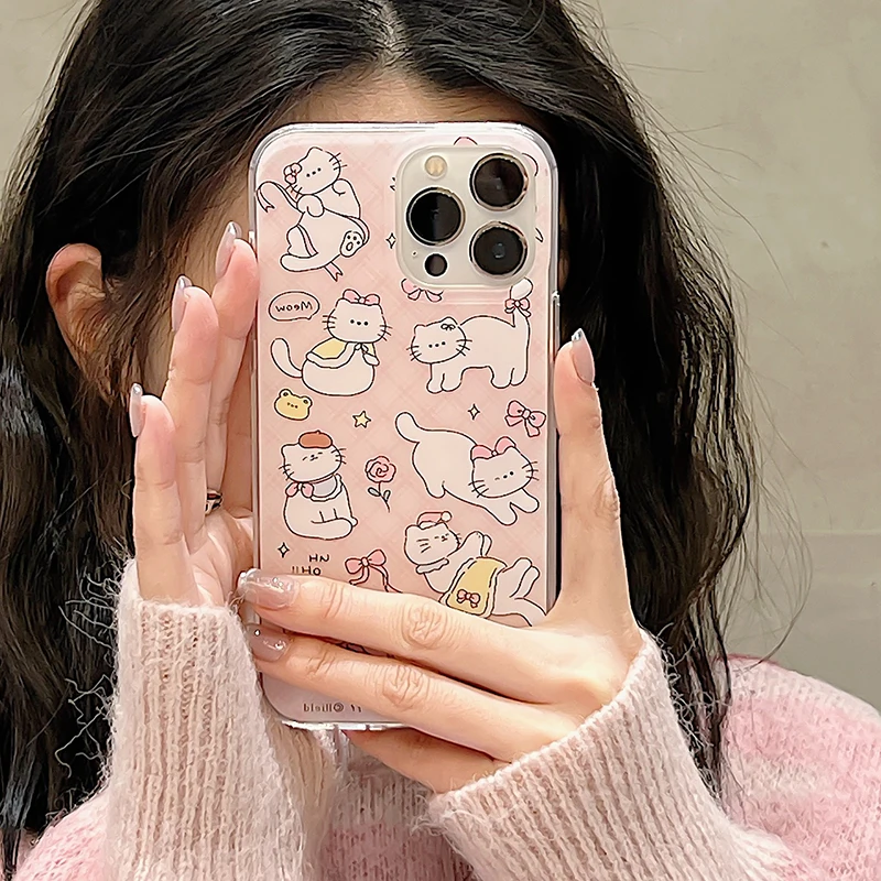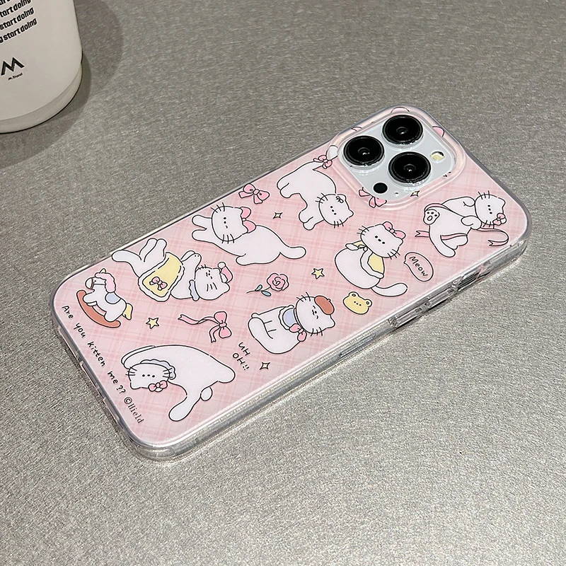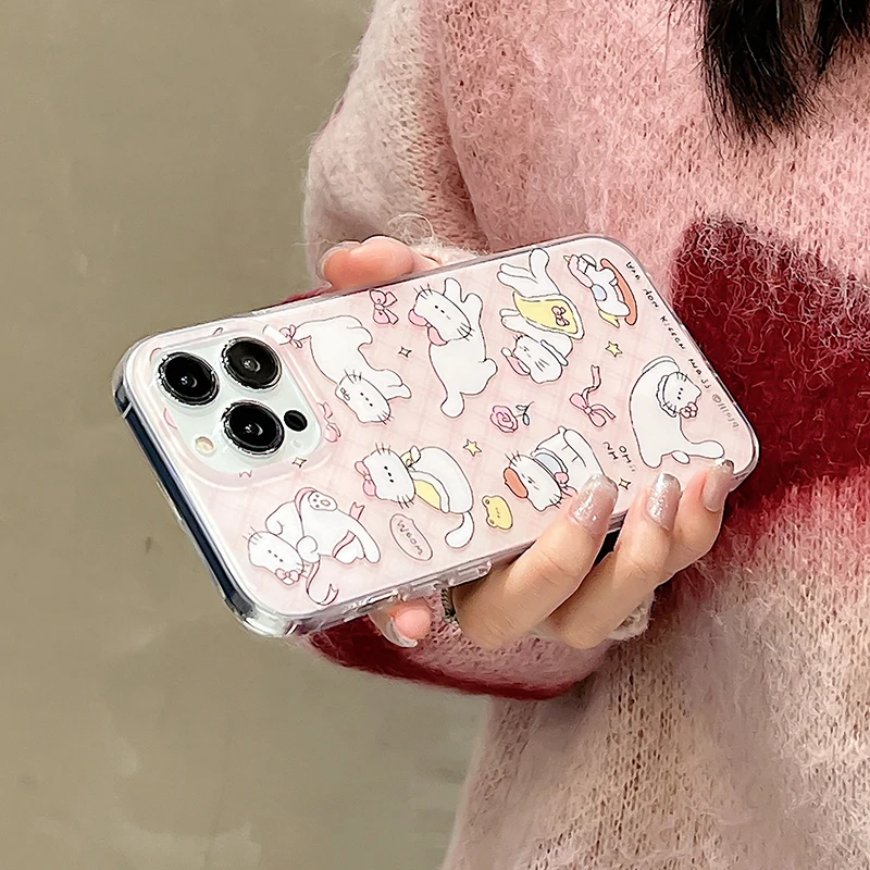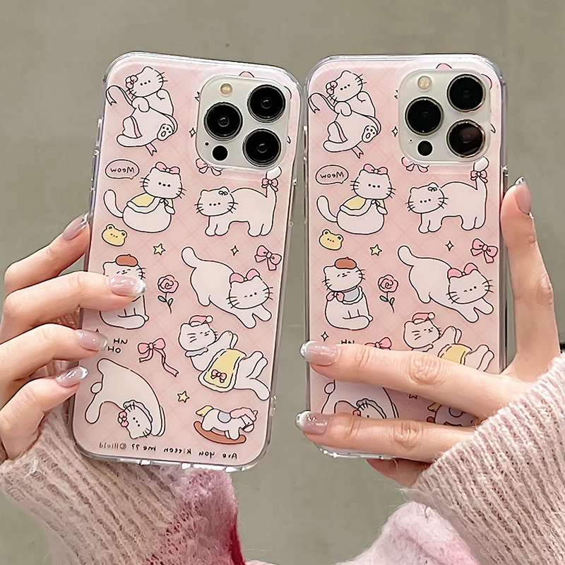 Lovely White Cat Pink IMD Funda de silicona para iPhone 11 12 13 14 15 Pro Max 15 Plus Funda de teléfono a prueba de golpes