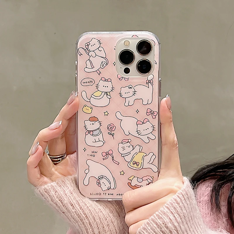 Comprar Funda de silicona IMD para iPhone, carcasa a prueba de golpes, gato blanco, rosa, 11, 12, 13, 14, 15 Pro Max, 15 Plus