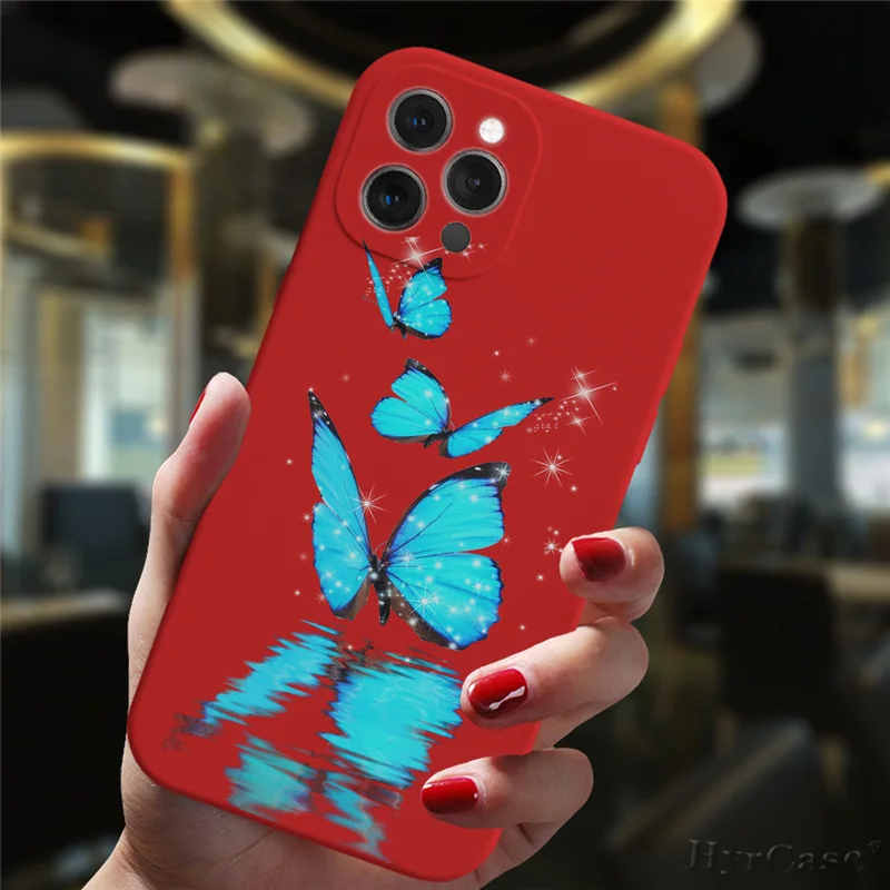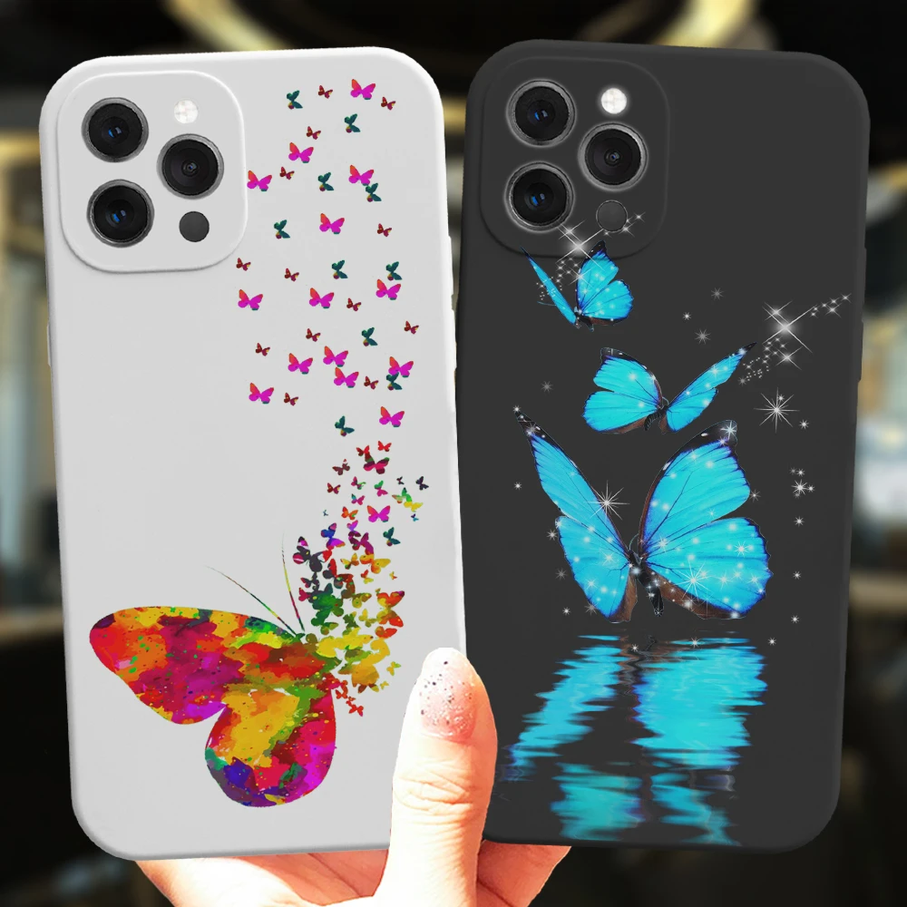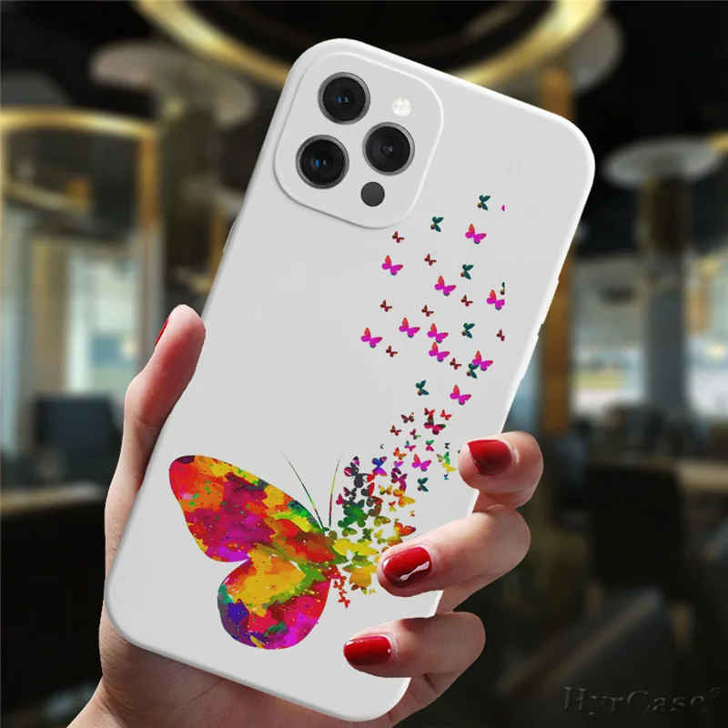 Para iPhone 13 11 12 14 Pro Max Mini 7 8 15 Plus XS Max XR funda moda hermosa mariposa colorida Popular caramelo funda de silicona