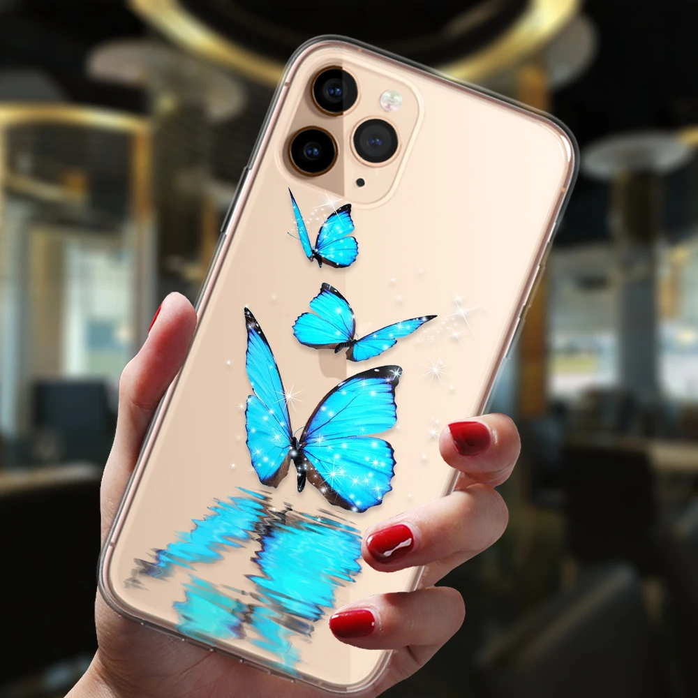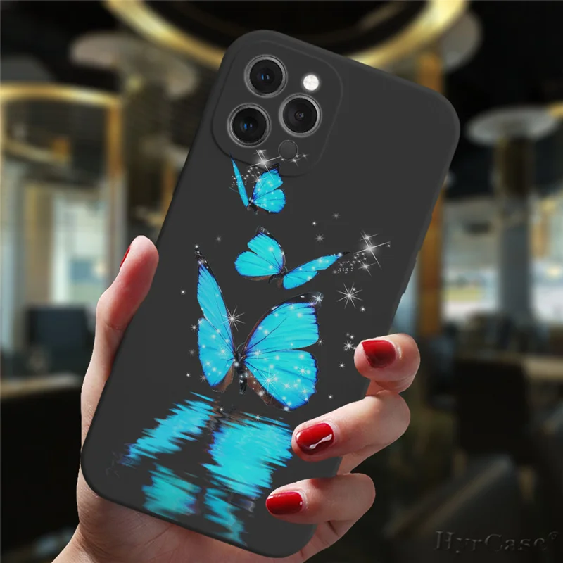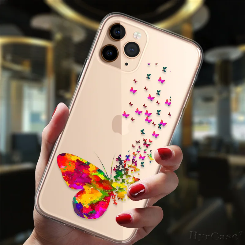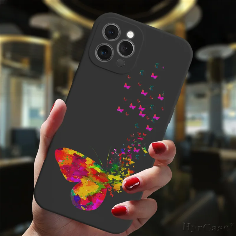 Comprar Funda de silicona para iPhone 13, 11, 12, 14 Pro Max Mini, 7, 8, 15 Plus, XS, Max, XR, mariposa colorida, bonita y Popular