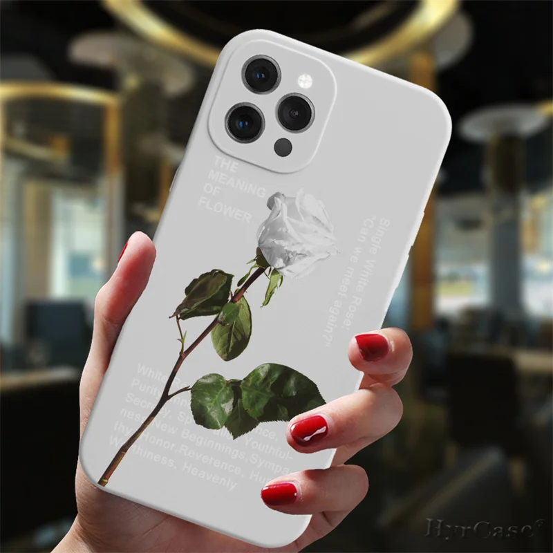 Para iPhone 13 11 12 14 Pro Max Mini 7 8 15 Plus XS Max XR funda moda elegante Rosa Blanca Popular caramelo funda de silicona