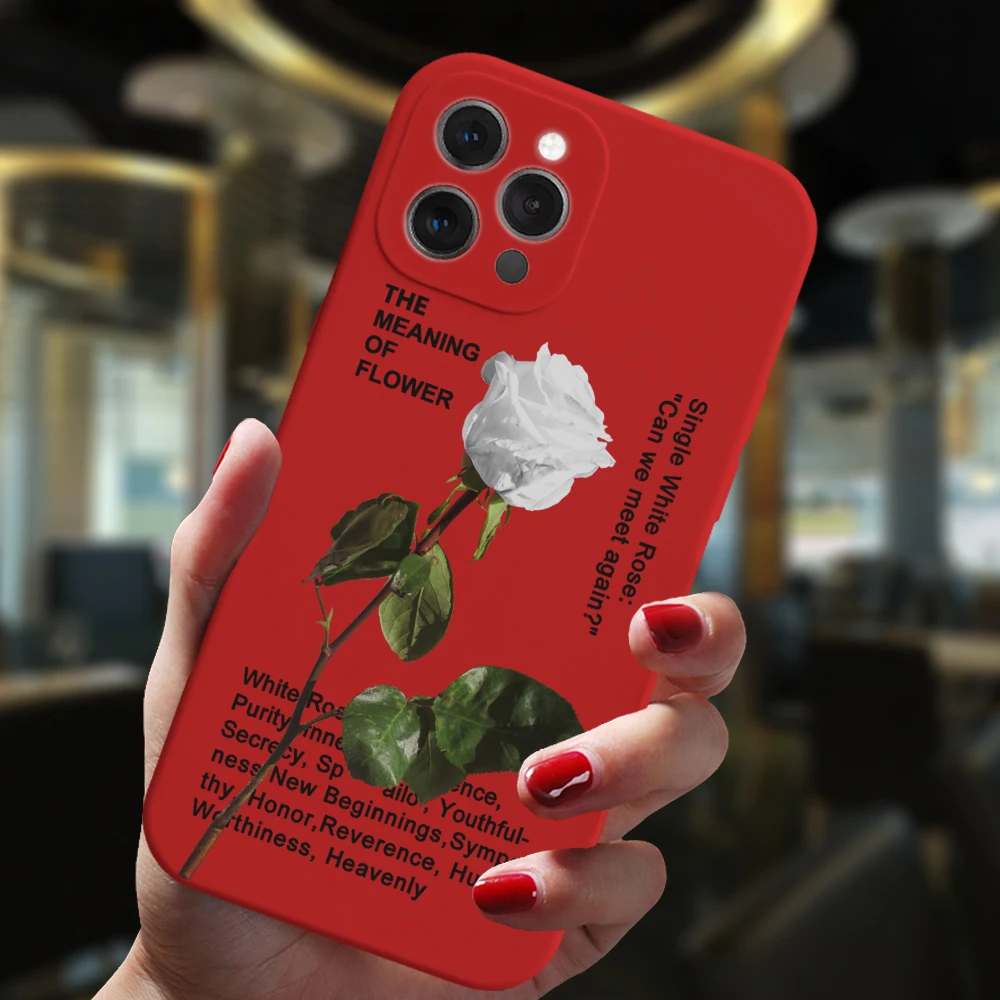 Para iPhone 13 11 12 14 Pro Max Mini 7 8 15 Plus XS Max XR funda moda elegante Rosa Blanca Popular caramelo funda de silicona