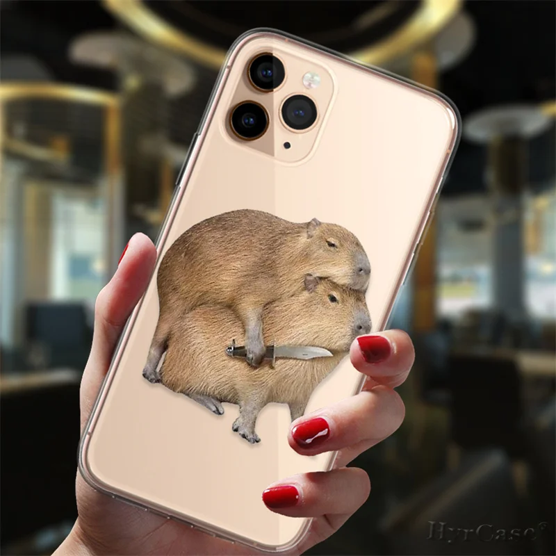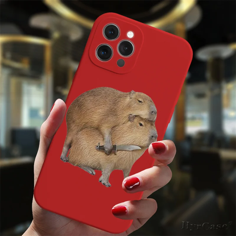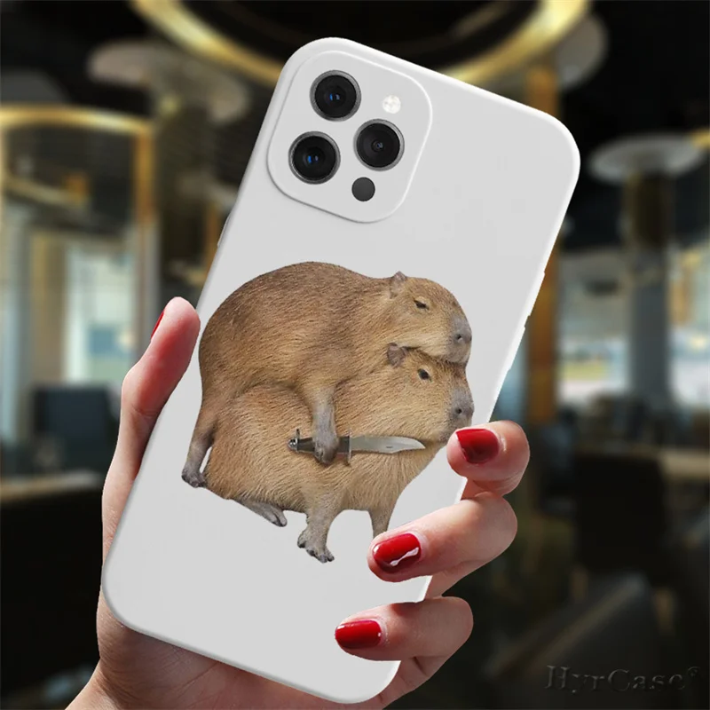 Para iPhone 13 11 12 14 Pro Max Mini 7 8 15 Plus XS Max XR funda de moda divertida Capybara lindo Animal Popular caramelo funda de silicona