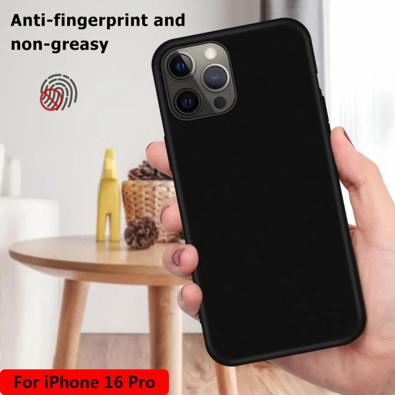 Comprar Funda de silicona para iPhone 16 Pro Max, cubierta suave a prueba de caídas, material TPU, color negro mate