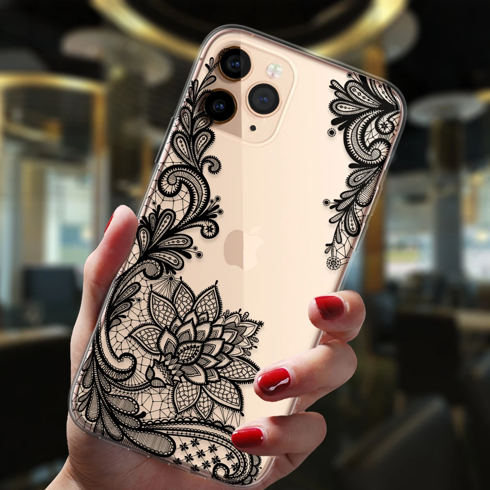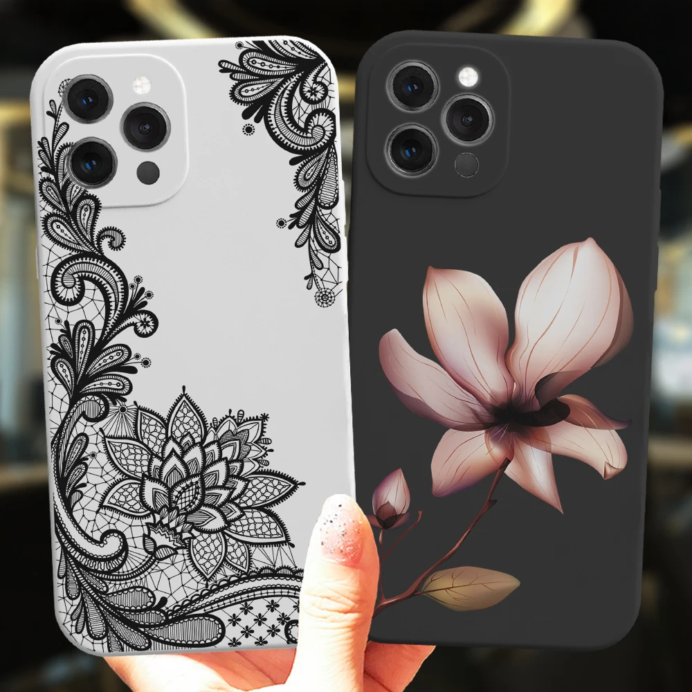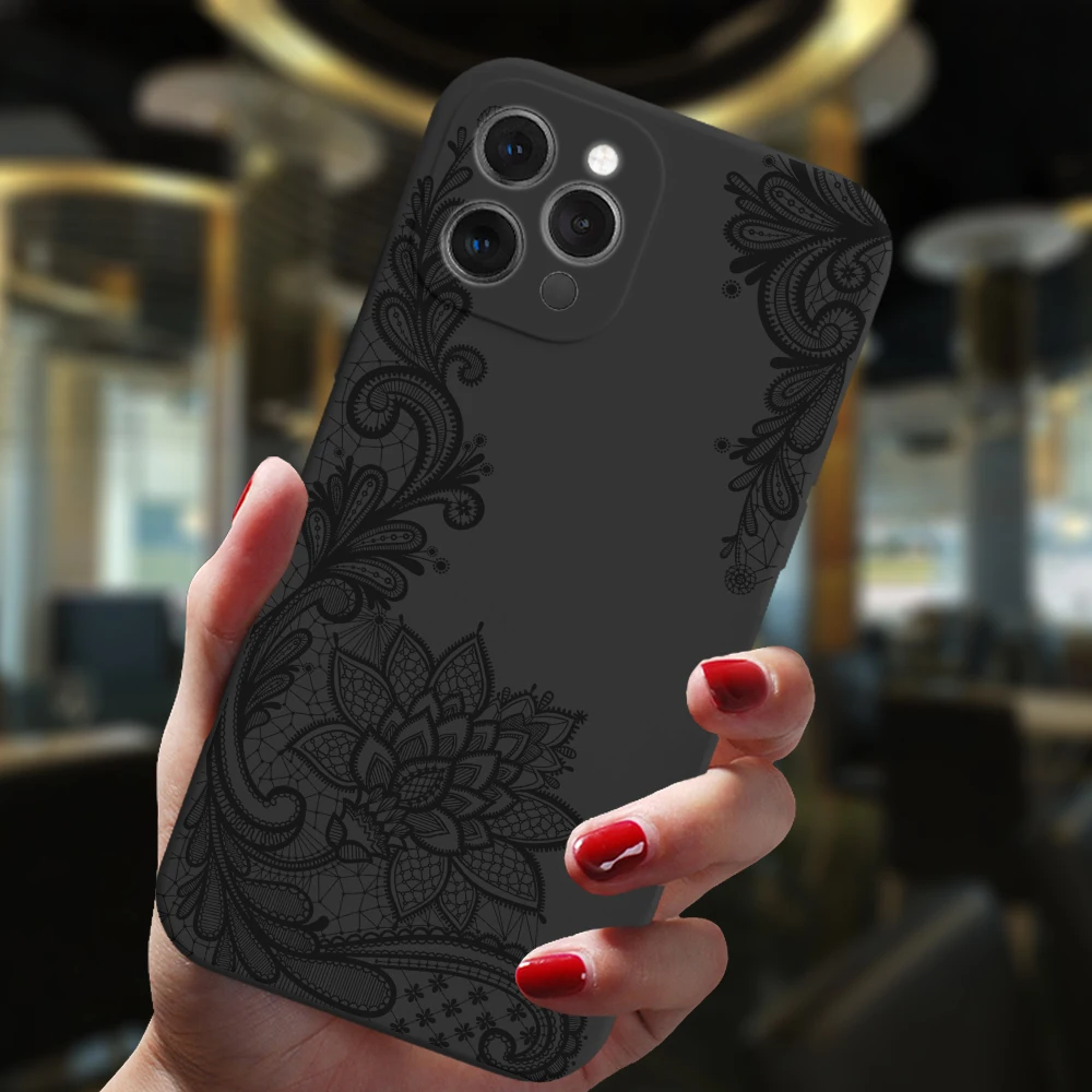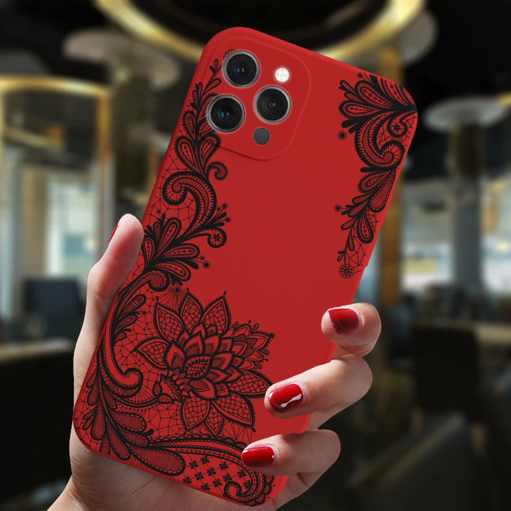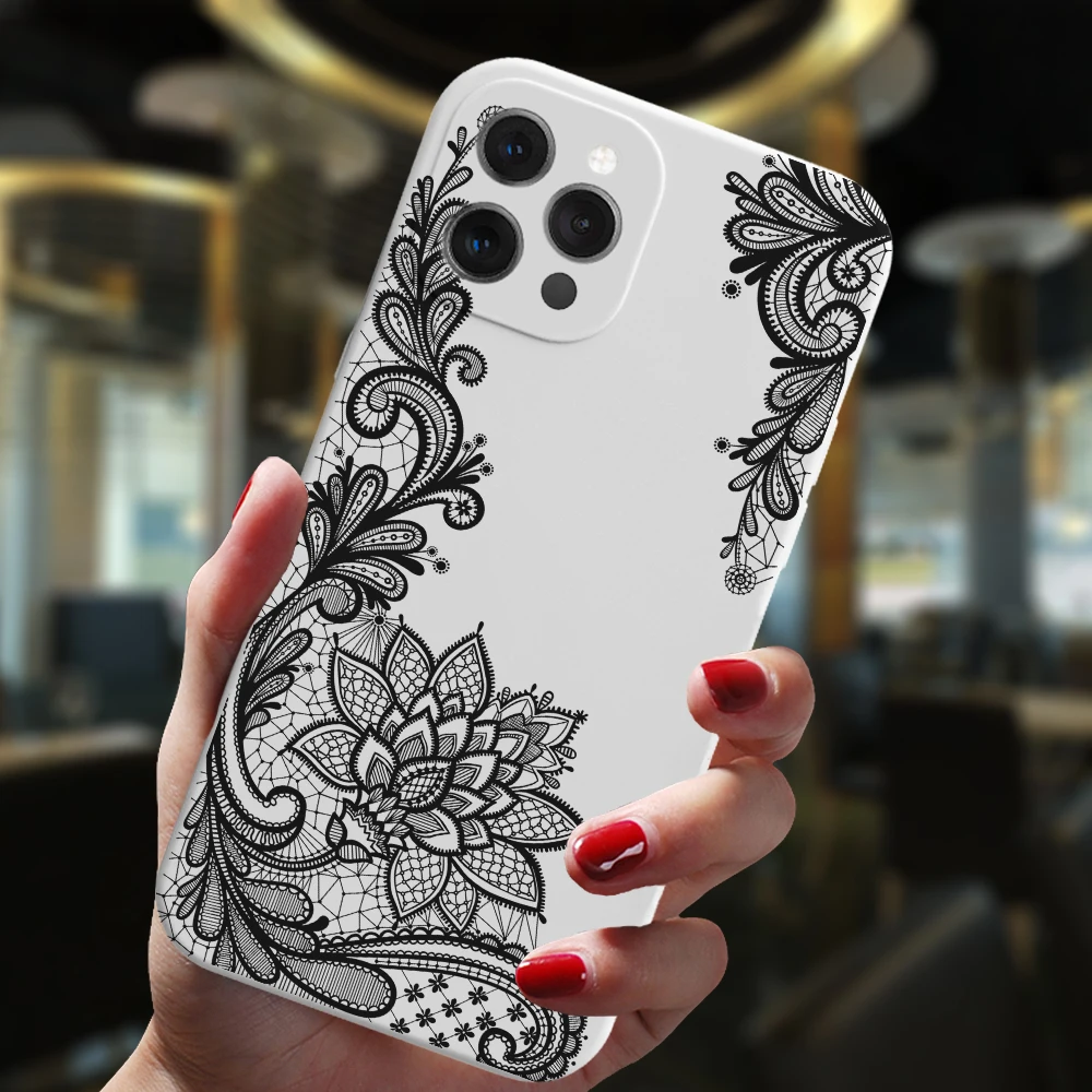 Funda de Silicona para iPhone 13, 11, 12, 14 Pro Max, Mini 7, 8, 15 Plus, XS, Max, XR, Flor de Moda, Sexy, con Encaje Floral, Bonita y Popular