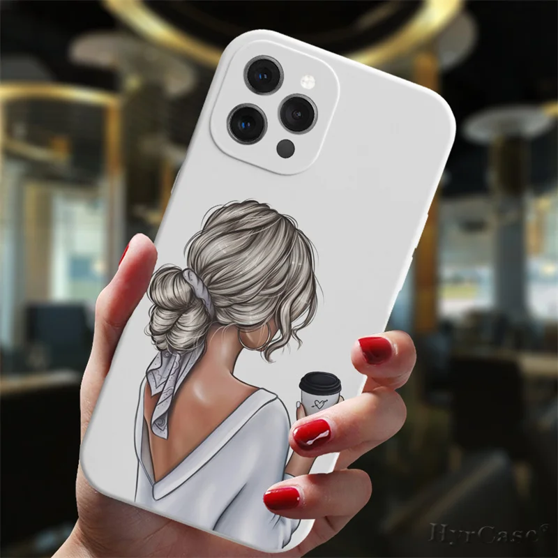 Para iPhone 13 11 12 14 Pro Max Mini 7 8 15 Plus XS Max XR funda moda mujer niña bebé Popular caramelo funda de silicona