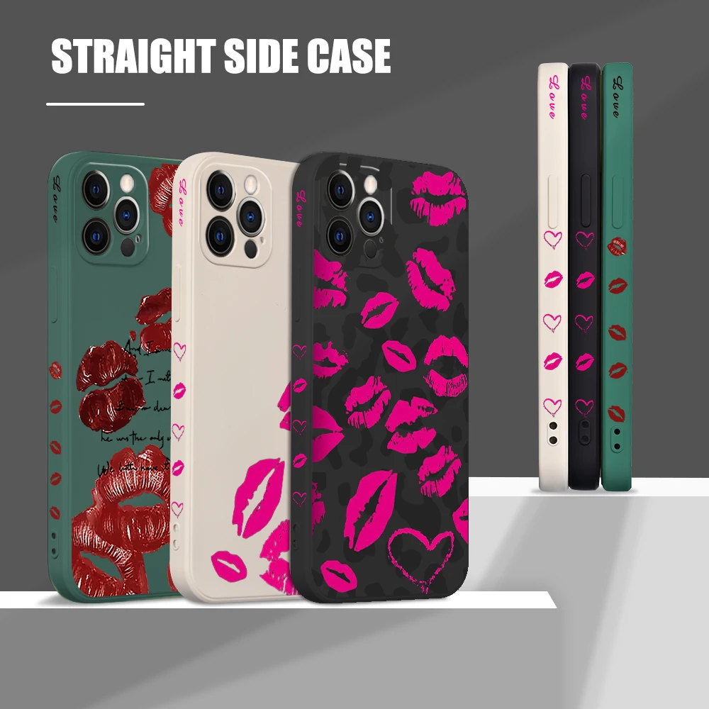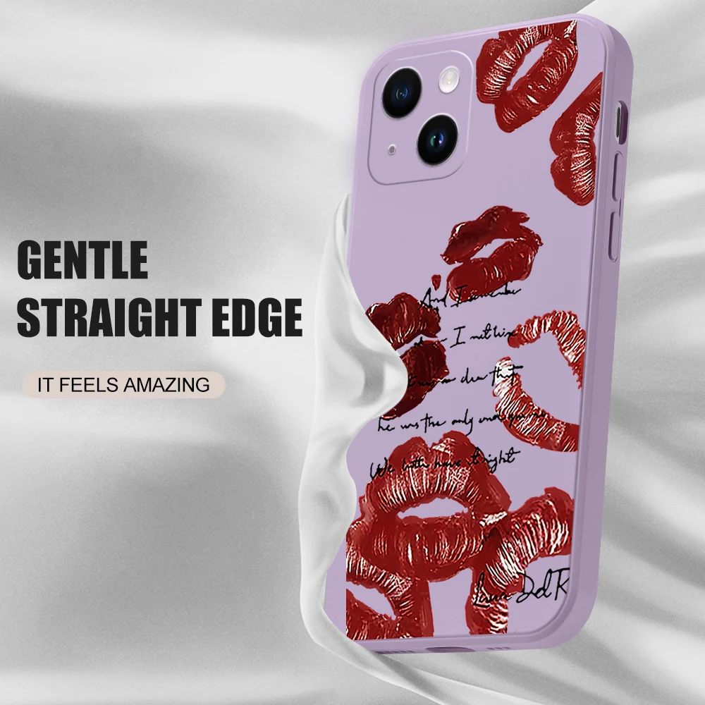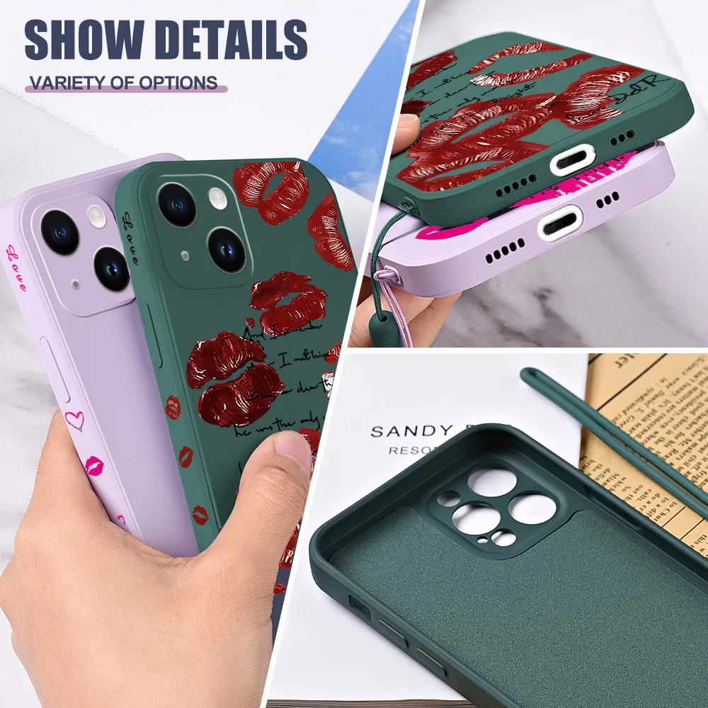 Nombre: funda de teléfono Love Red Lips Característica A: funda de teléfono de silicona líquida-forro de franela Característica B: con cordón de soporte de mano Característica C: Piel de bebé Tacto cómodo Característica D: a prueba de caídas, a prueba de golpes, a prueba de arañazos, protección de lentes