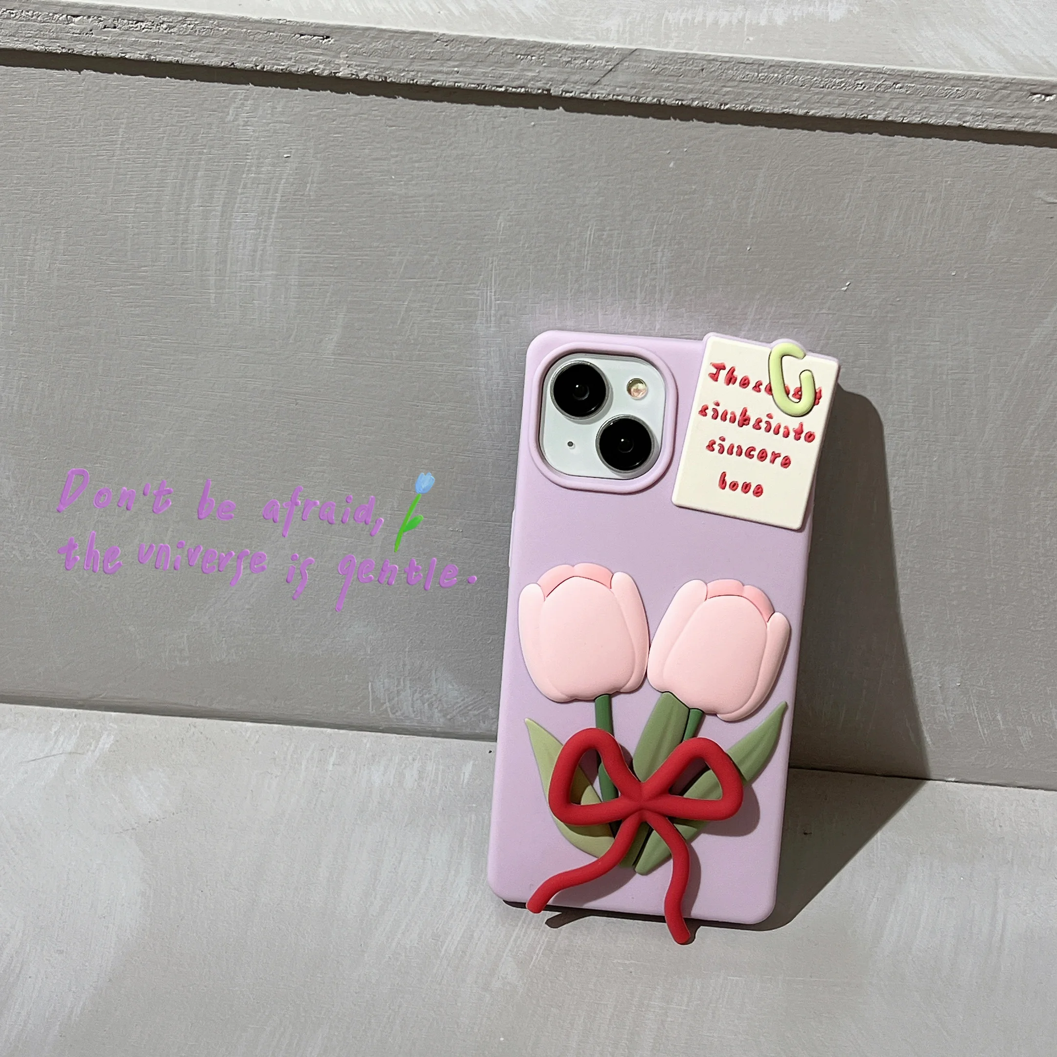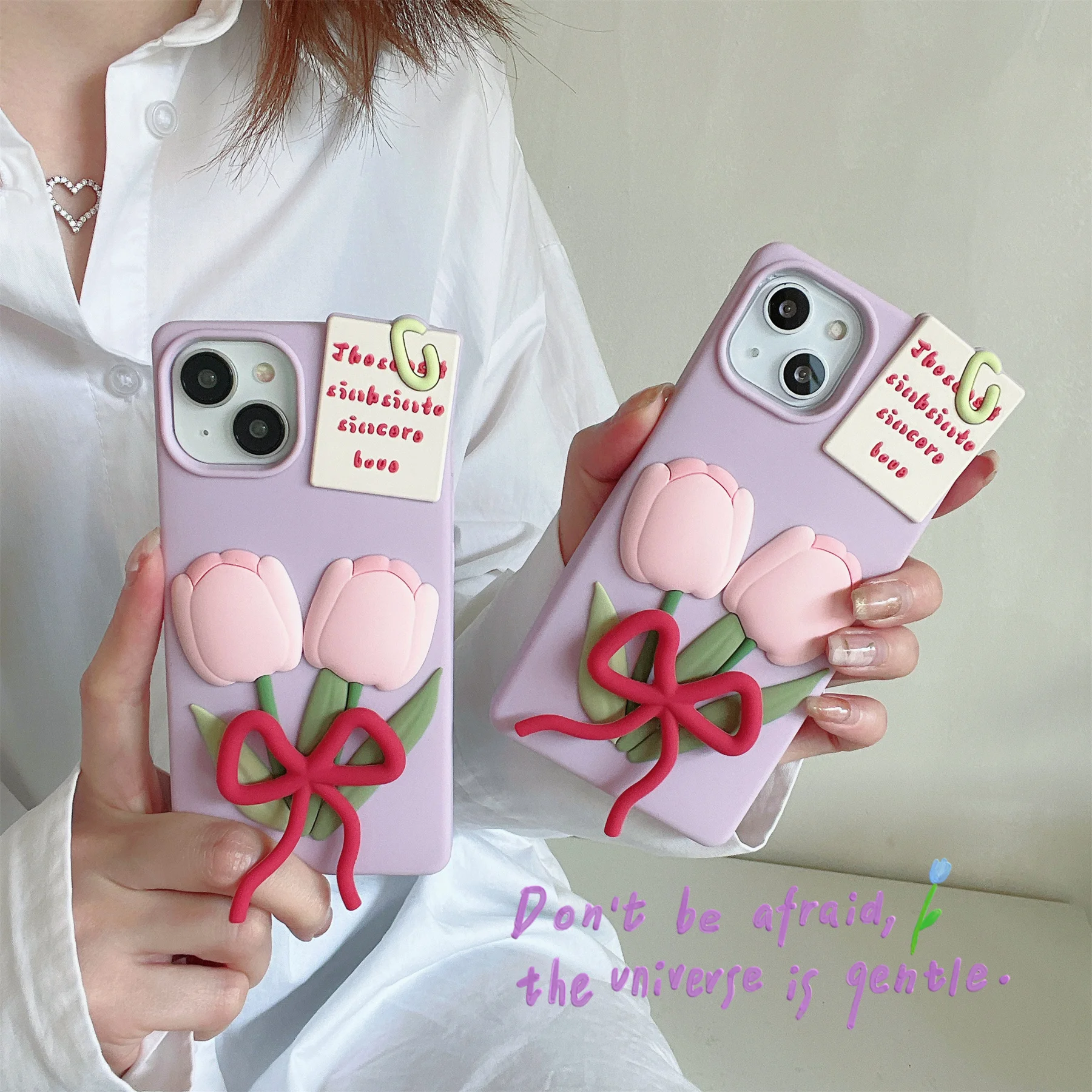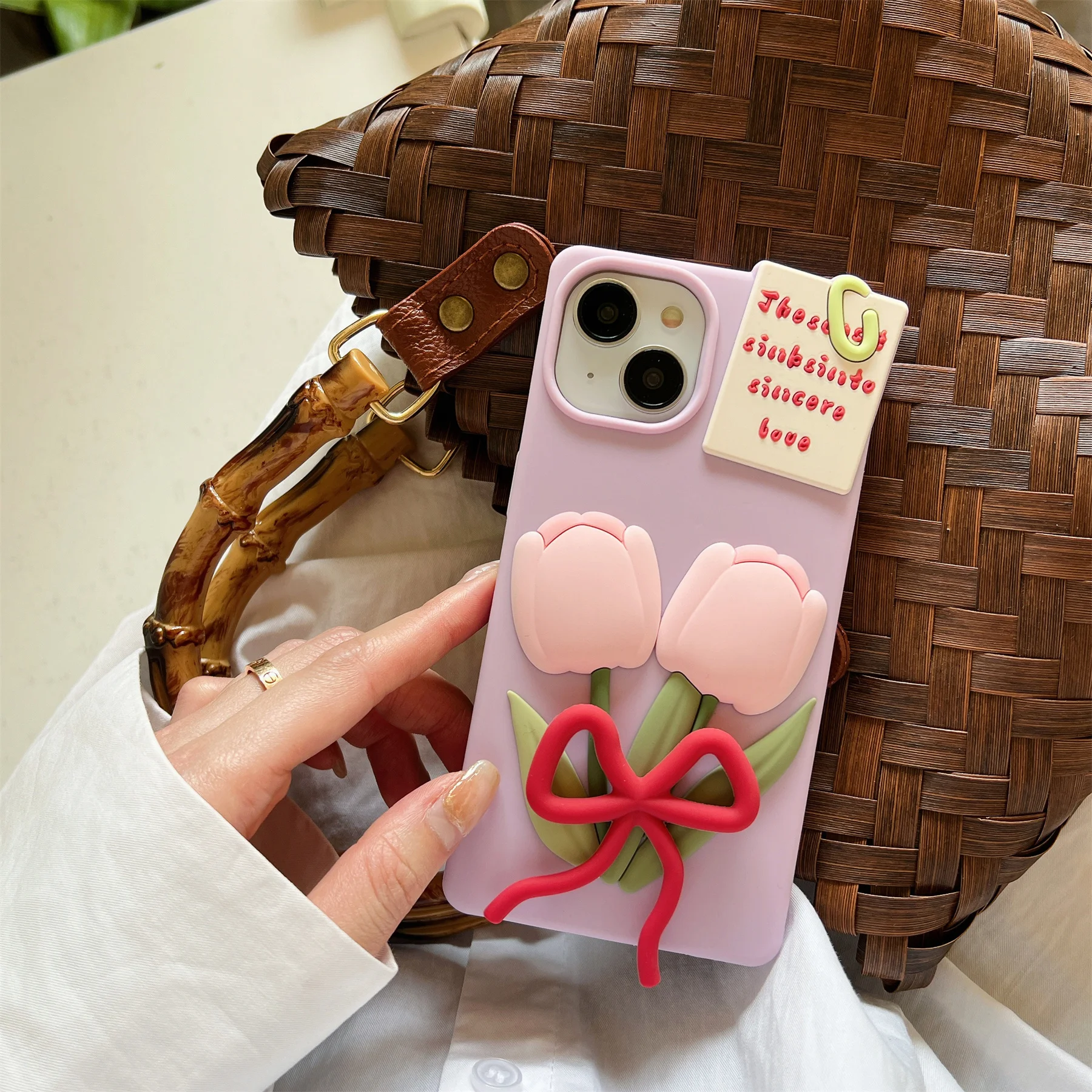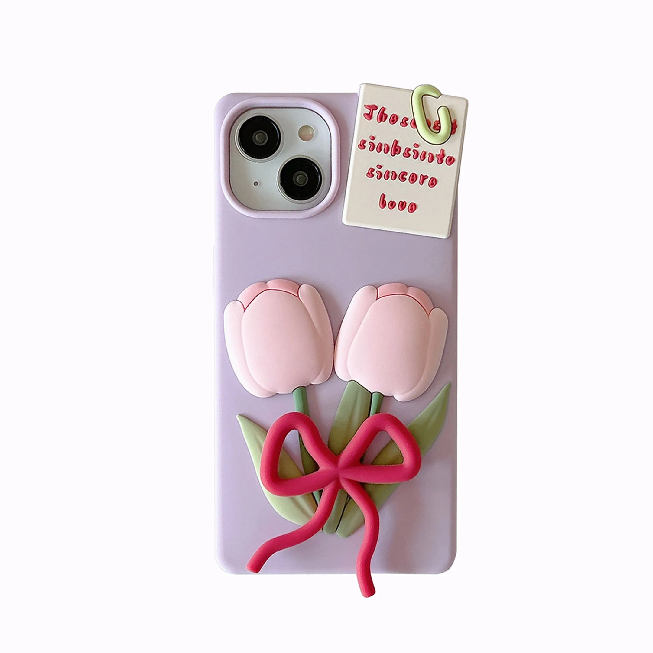 Comprar Funda de silicona con lazo de tulipán en 3D para Iphone, carcasa para Iphone 11, 13, 12, 12Pro, 13Pro, 13pro Max, 14, 14Pro, 14pro Max