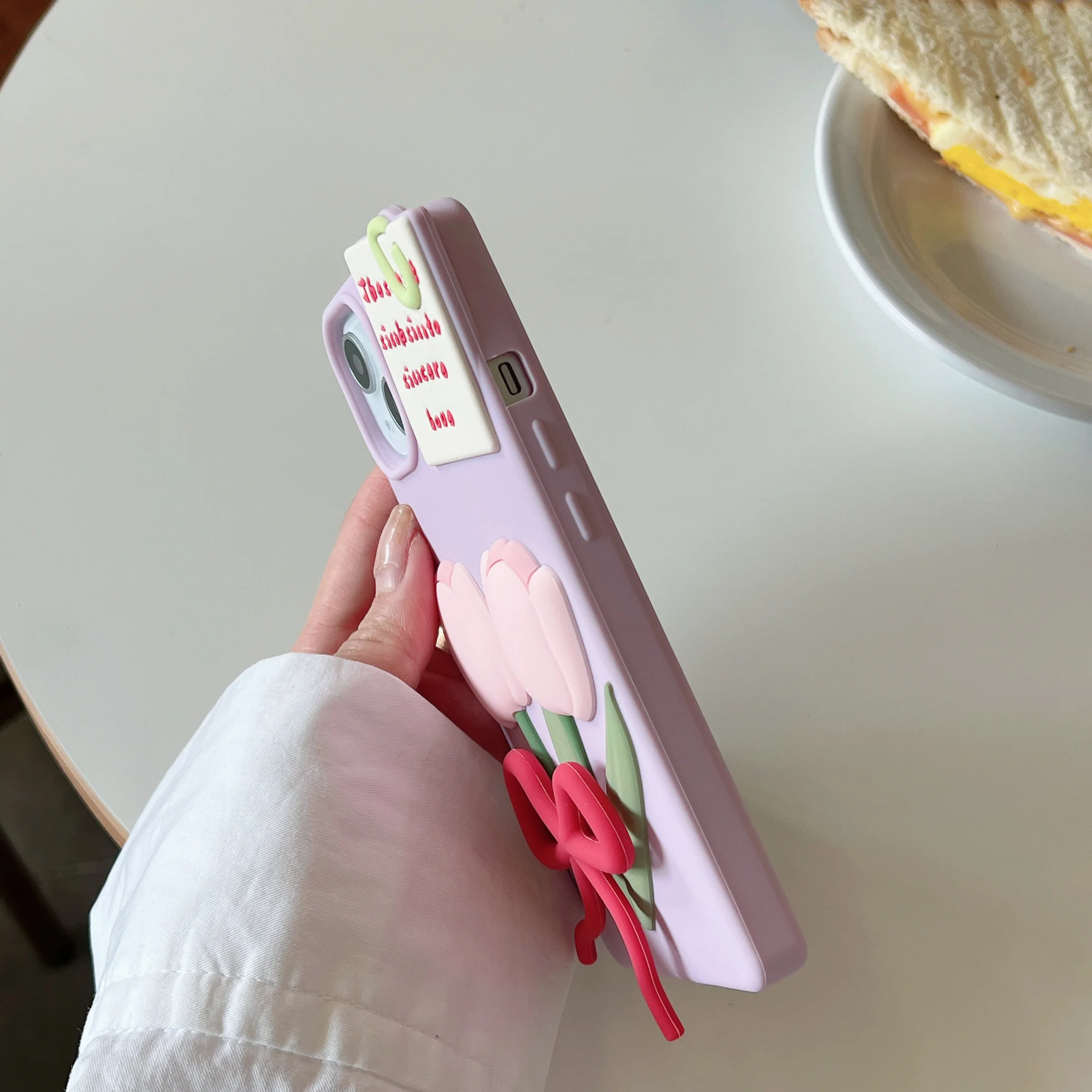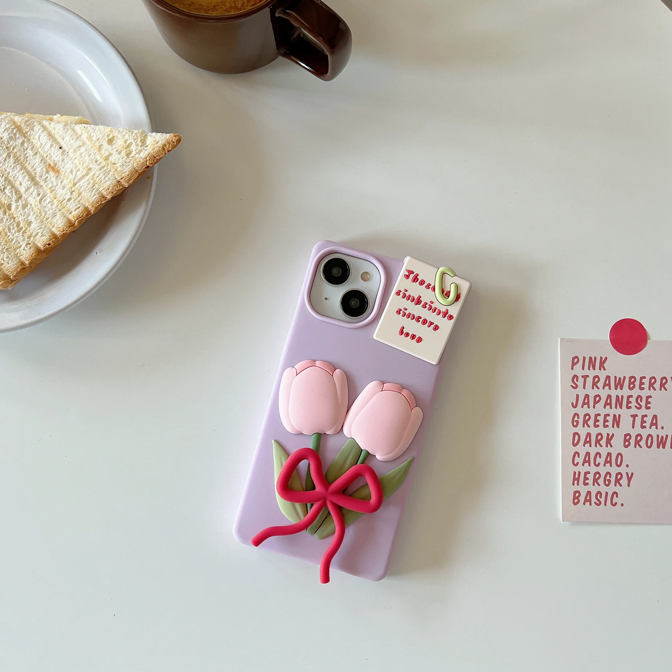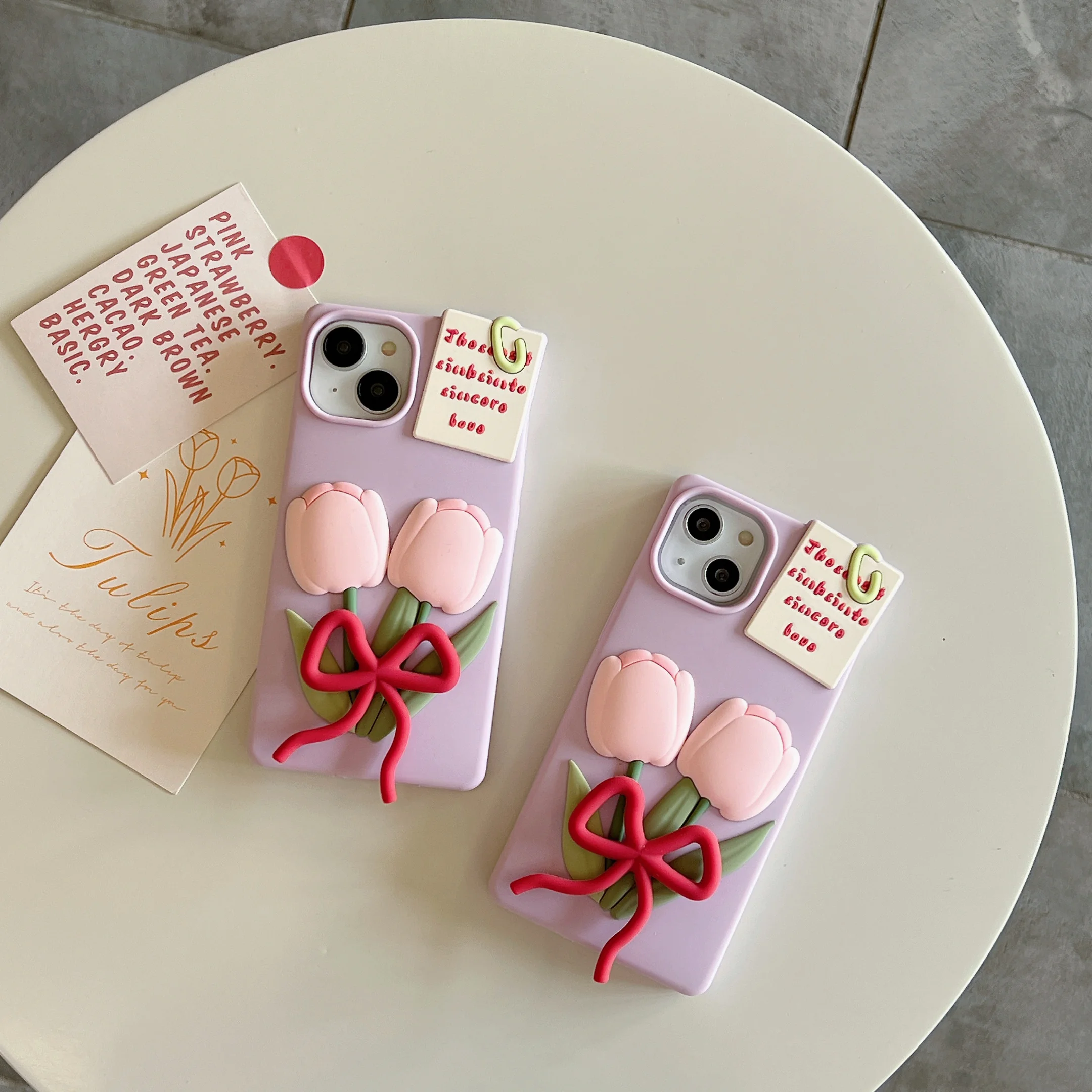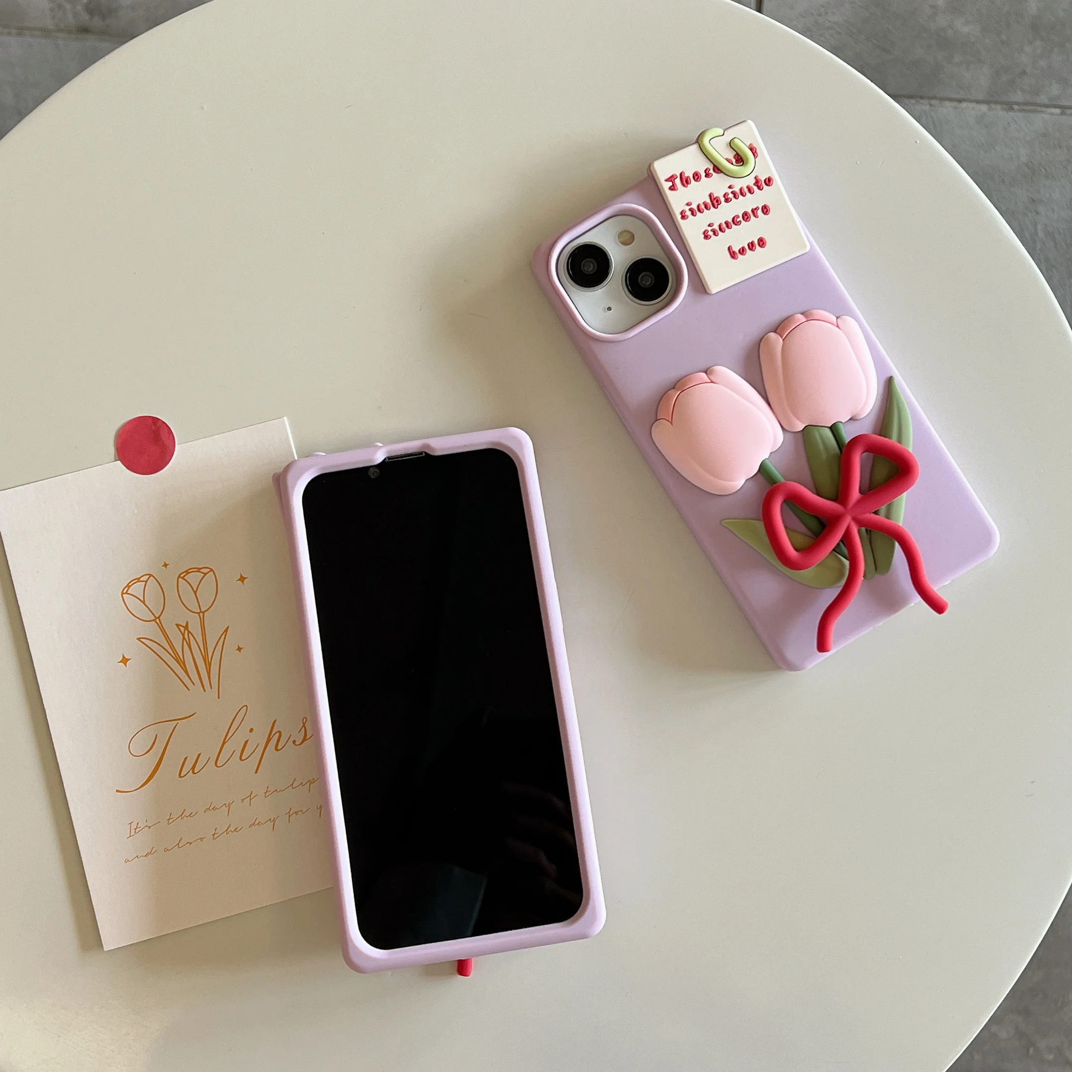 Comprar Funda de silicona con lazo de tulipán en 3D para Iphone, carcasa para Iphone 11, 13, 12, 12Pro, 13Pro, 13pro Max, 14, 14Pro, 14pro Max