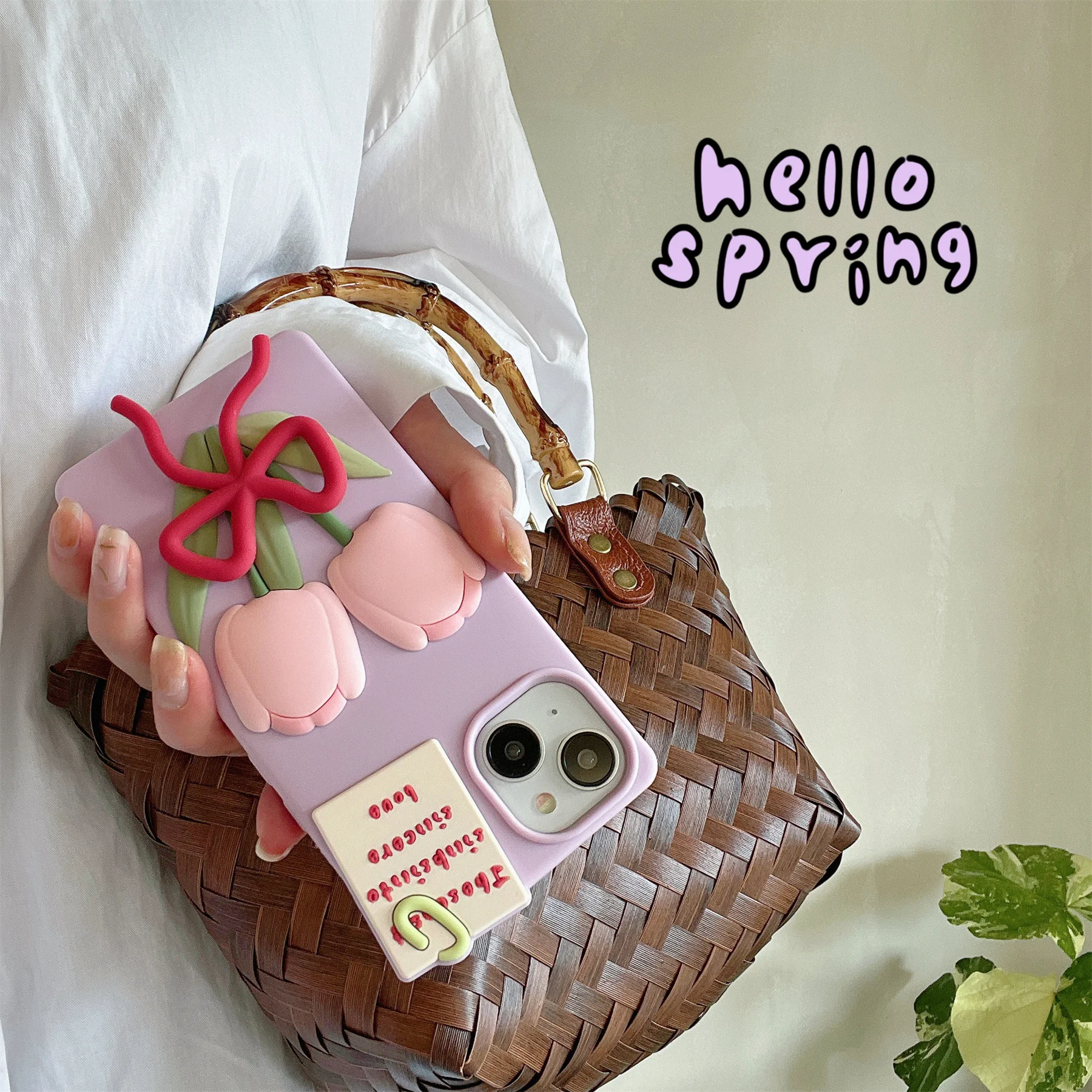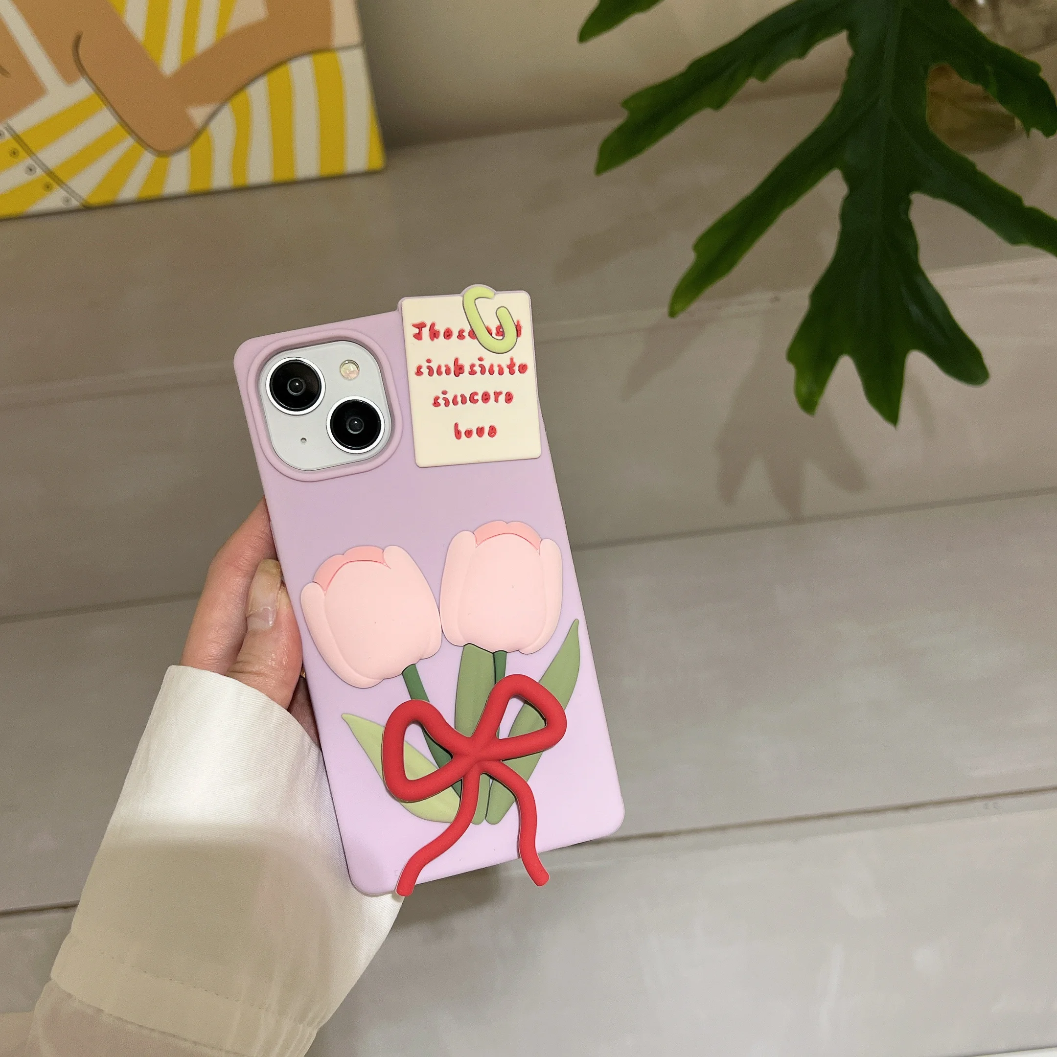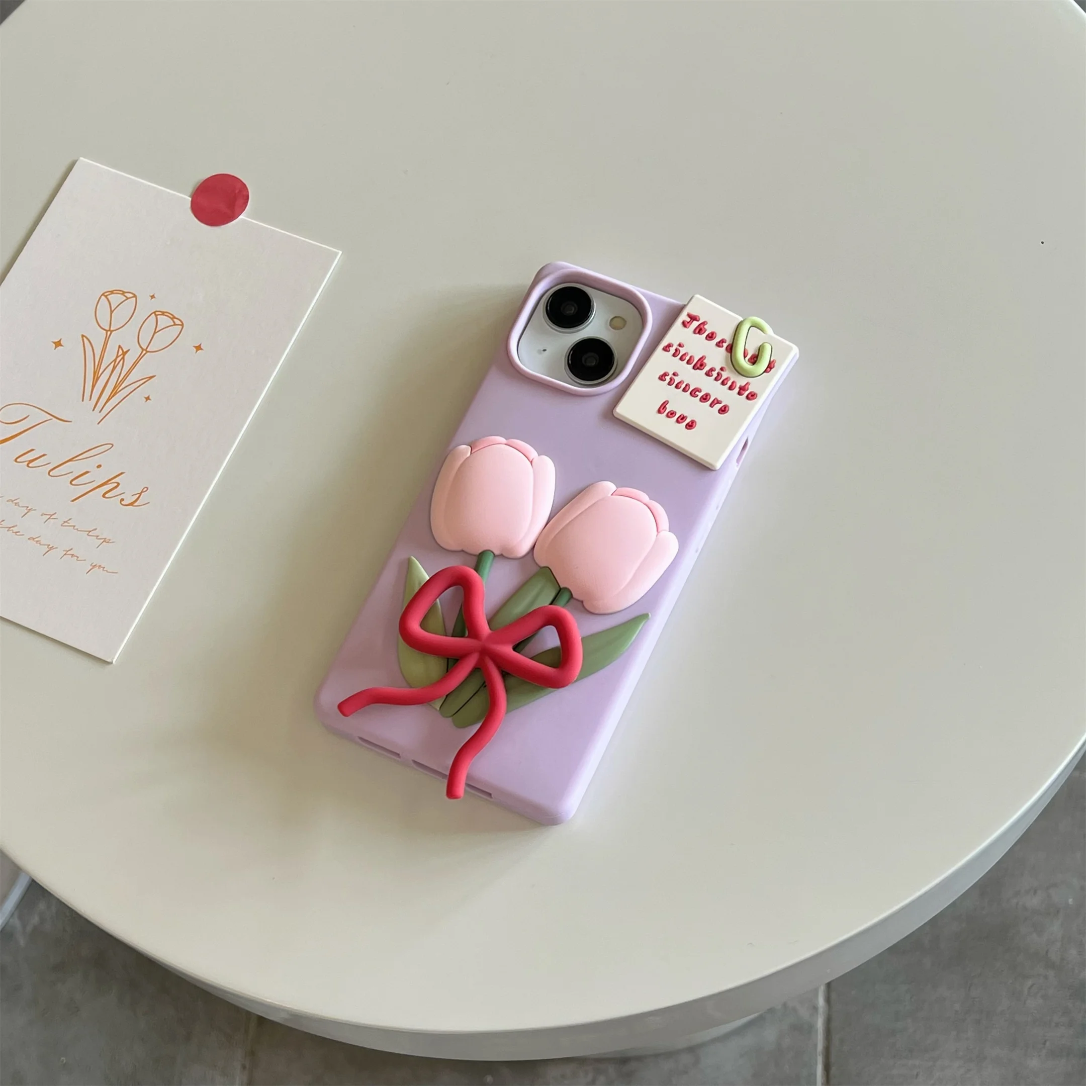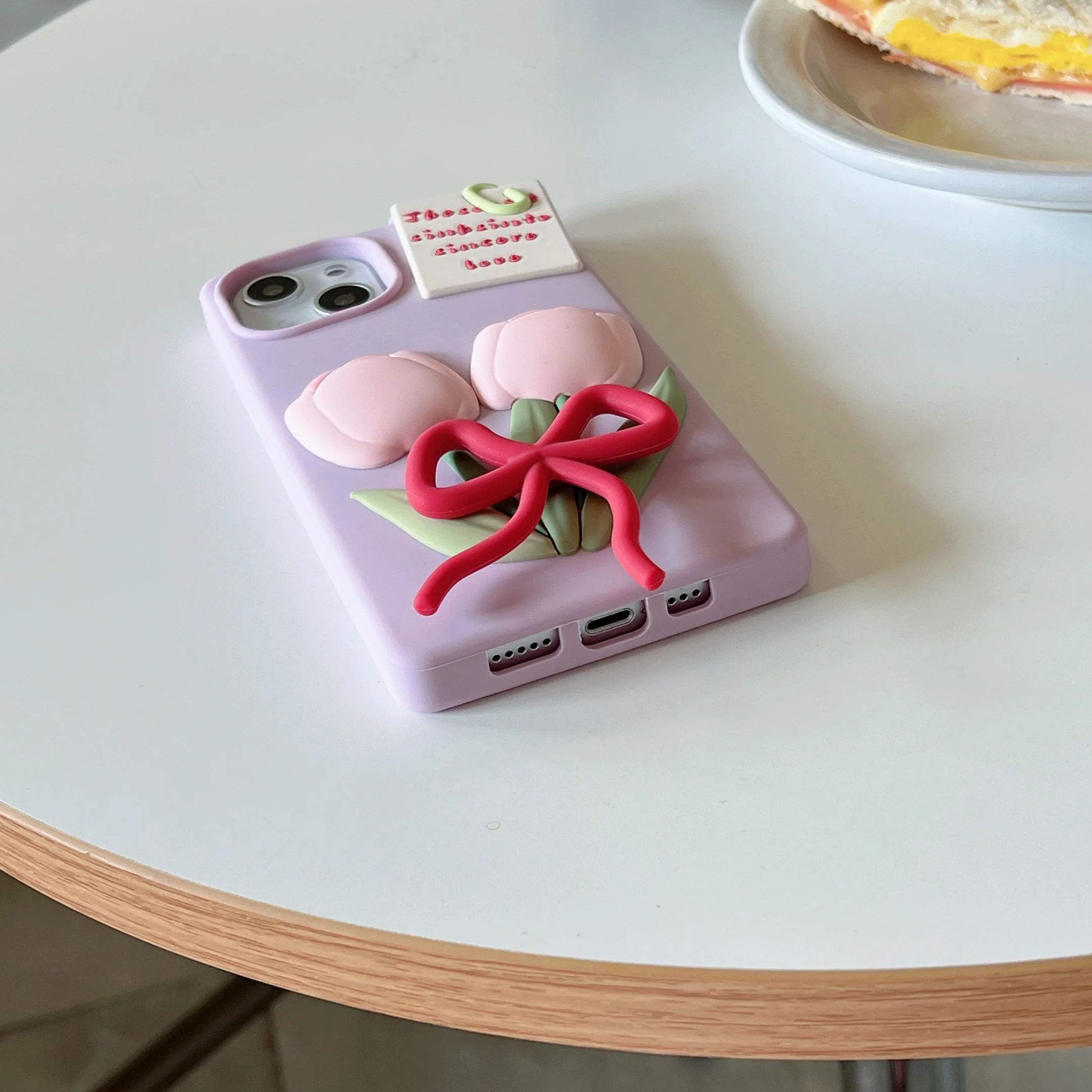 Comprar Funda de silicona con lazo de tulipán en 3D para Iphone, carcasa para Iphone 11, 13, 12, 12Pro, 13Pro, 13pro Max, 14, 14Pro, 14pro Max