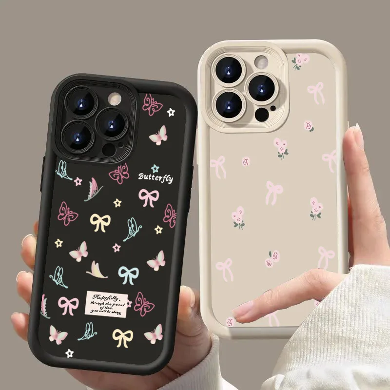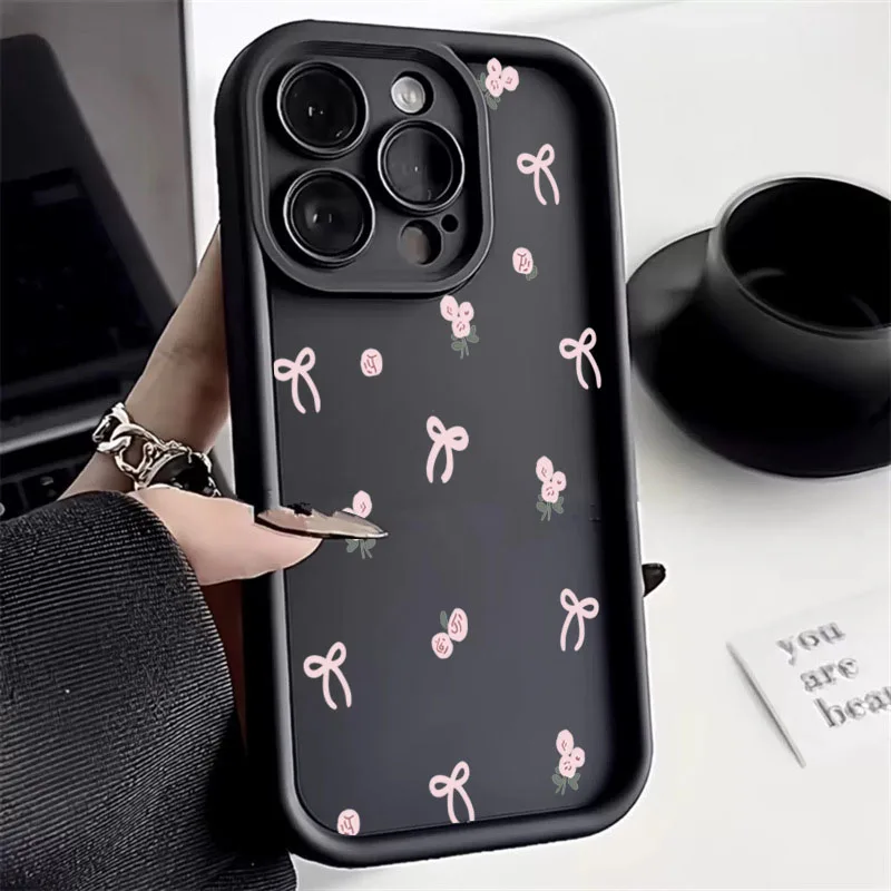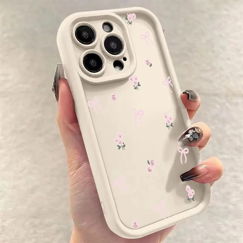 Comprar Funda de silicona con lazo y flores para Samsung Galaxy S24 S23 Ultra A14 A54 A55 A35 5G A15 A13 A53 A32 A52s S22 Plus S21 FE, funda suave