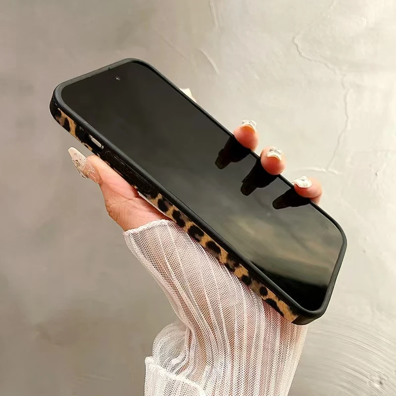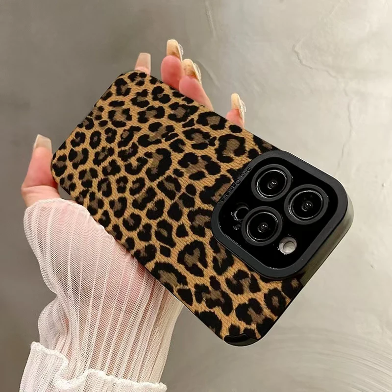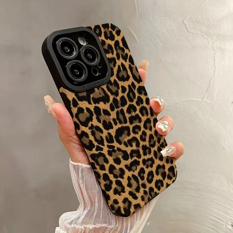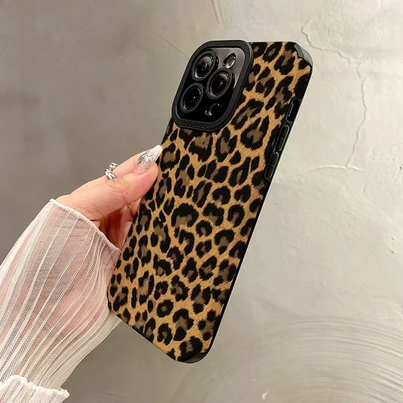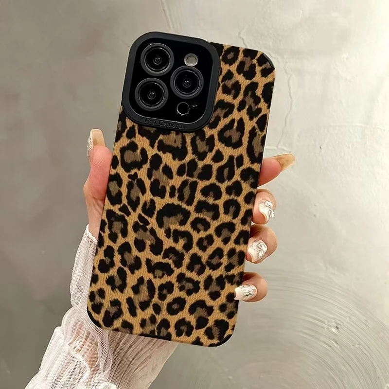 Comprar Funda de silicona de leopardo de lujo para iPhone 15 16 Pro Max 14 Plus 11 12 13 Mini X XR XS cubierta completa de cuero marrón a prueba de golpes