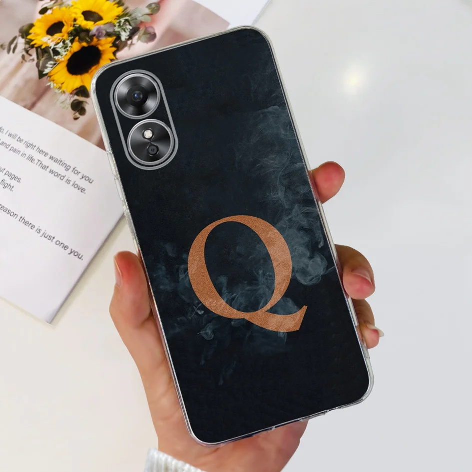 Para OPPO A17 Funda A 17 CPH2477 Funda de teléfono de TPU suave con letras de flores de silicona a la moda para OPPO A17K 4G Funda OPPOA17 K Bumper