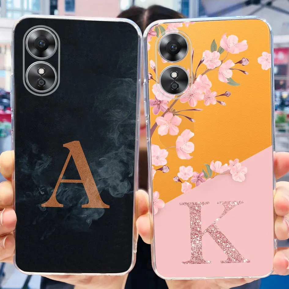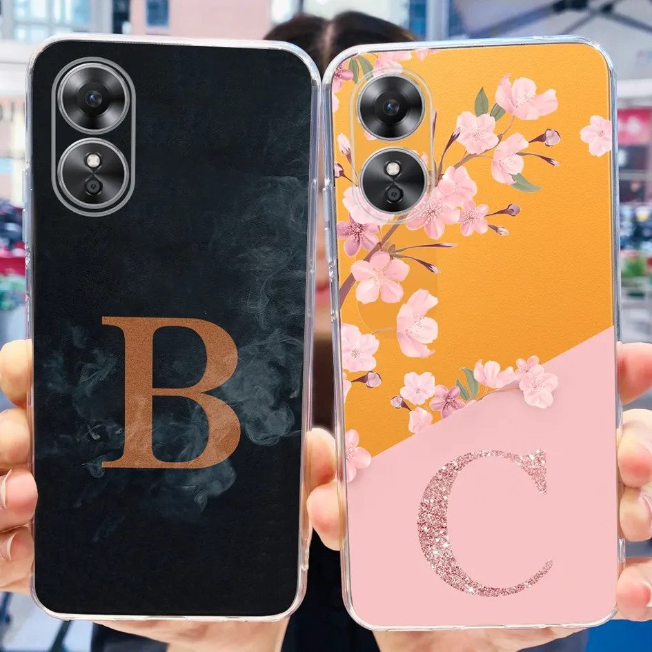 Para OPPO A17 Funda A 17 CPH2477 Funda de teléfono de TPU suave con letras de flores de silicona a la moda para OPPO A17K 4G Funda OPPOA17 K Bumper