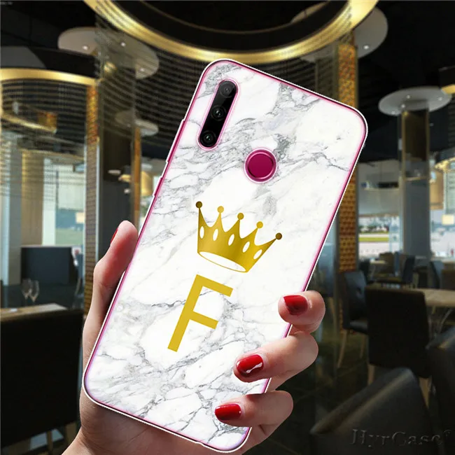 Funda de silicona con letras iniciales personalizadas de mármol Crown para Huawei Honor 10i 20i 20 30 Lite Pro para Huawei Honor 10 Lite 8X 9X