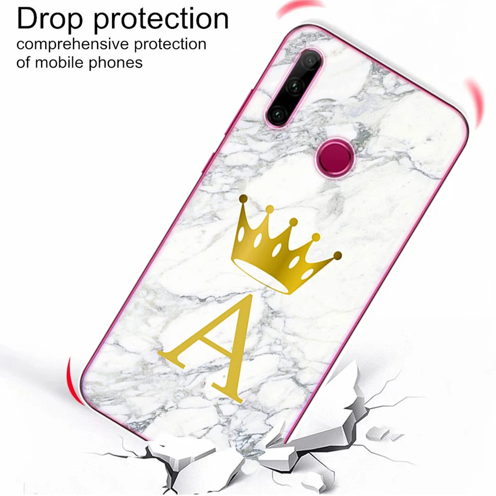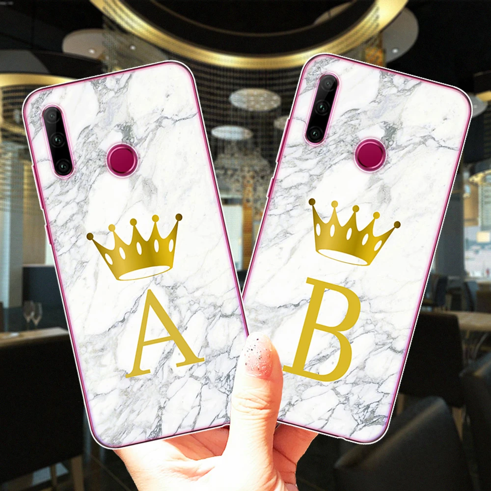 Funda de silicona con letras iniciales personalizadas de mármol Crown para Huawei Honor 10i 20i 20 30 Lite Pro para Huawei Honor 10 Lite 8X 9X