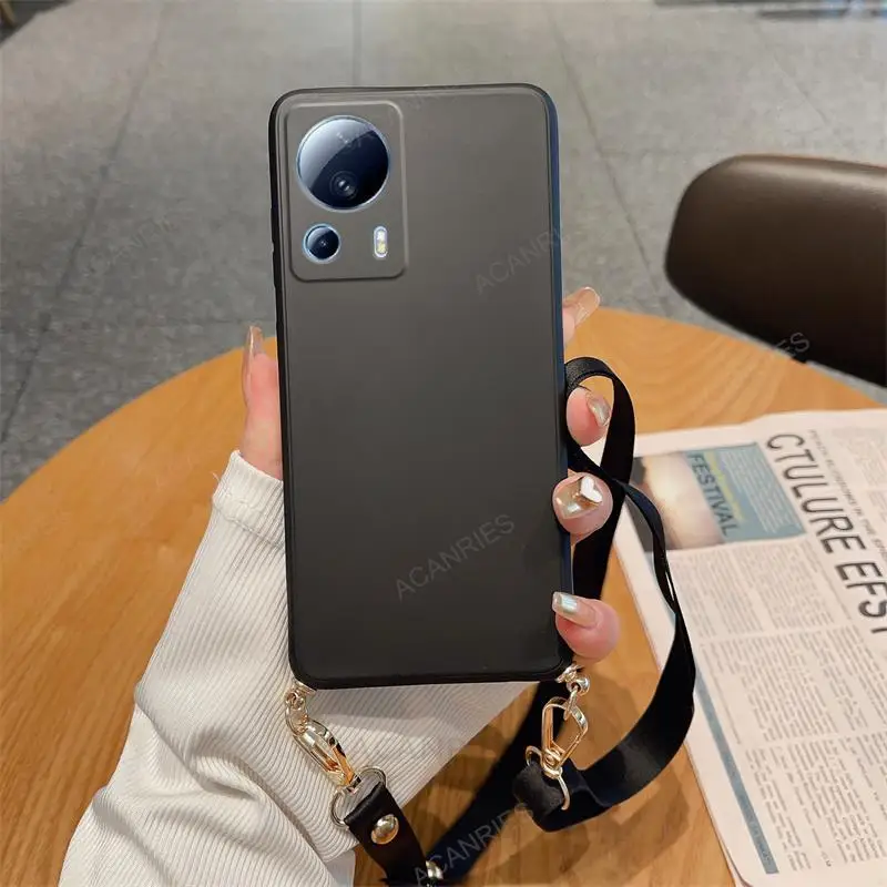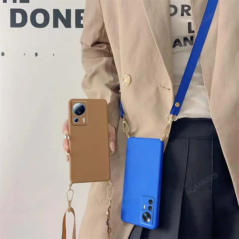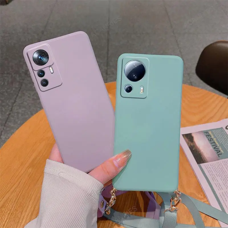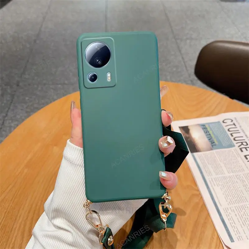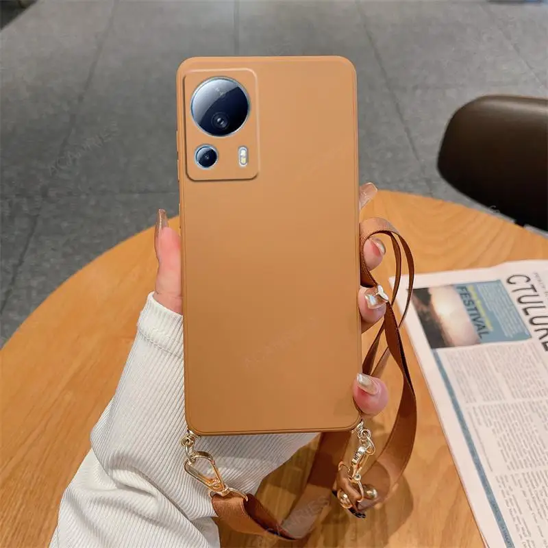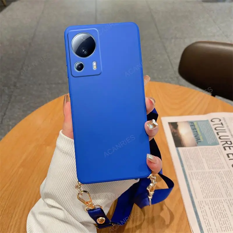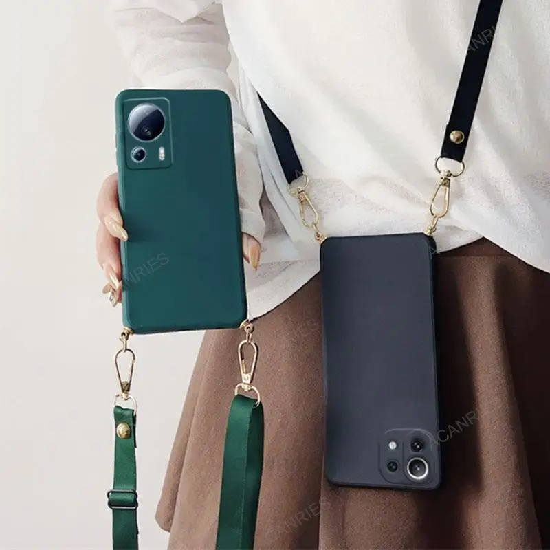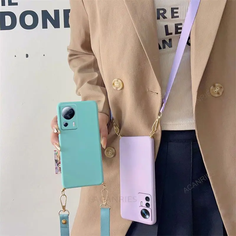 Funda de silicona líquida con cordón cruzado para Xiaomi Mi 13 12 11 Lite 5G NE 13T 12T 11T 10T Pro, funda de cordón con correa en Mi13