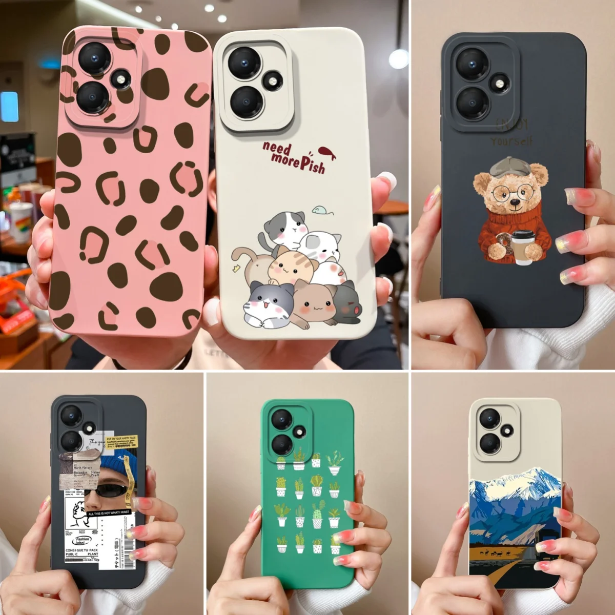 Viene en cuatro colores: negro oscuro, verde bosque, Rosa femenino y blanco cremoso. Cada color tiene un estilo diferente y un patrón de dibujos animados único, agregando un toque de diversión y personalidad a su teléfono para adaptarse a sus preferencias.