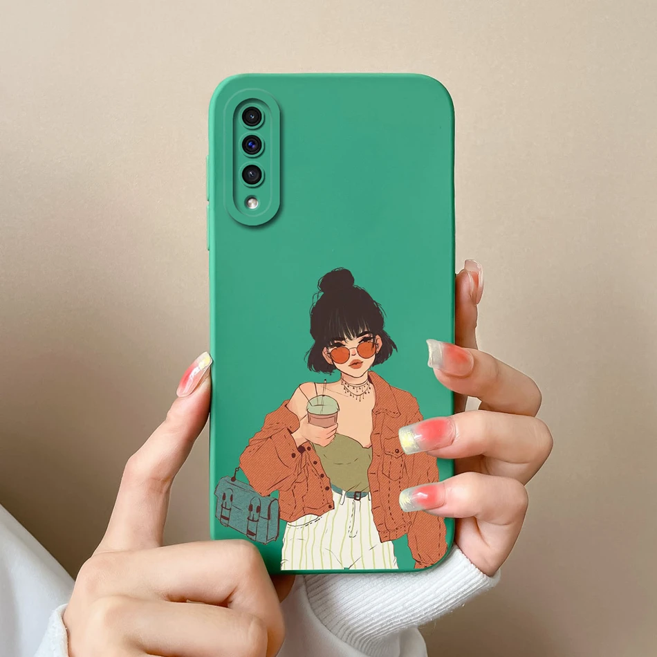 Comprar Funda de silicona líquida con dibujos animados para teléfono móvil, carcasa anticaída de cobertura completa para Samsung Galaxy A50, A50S