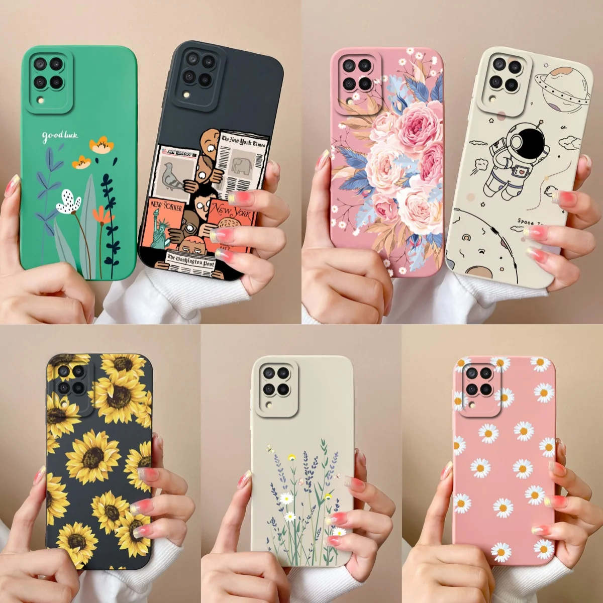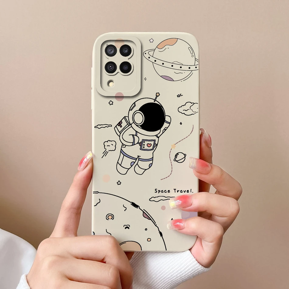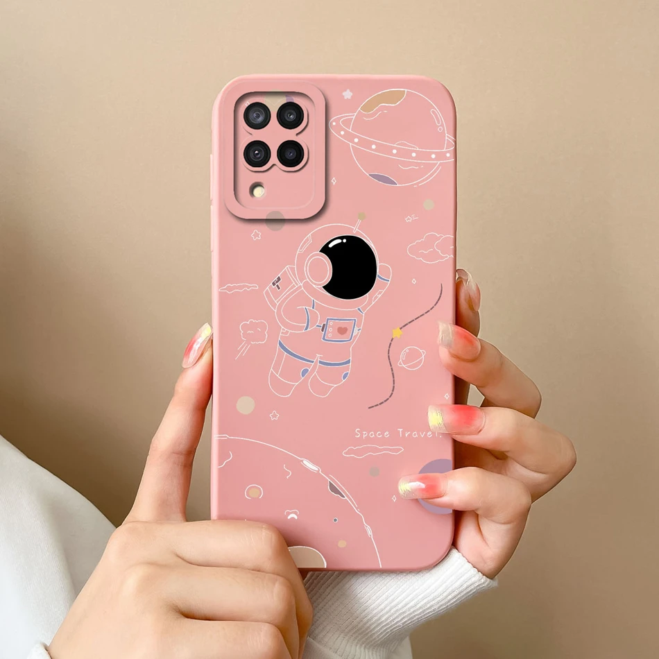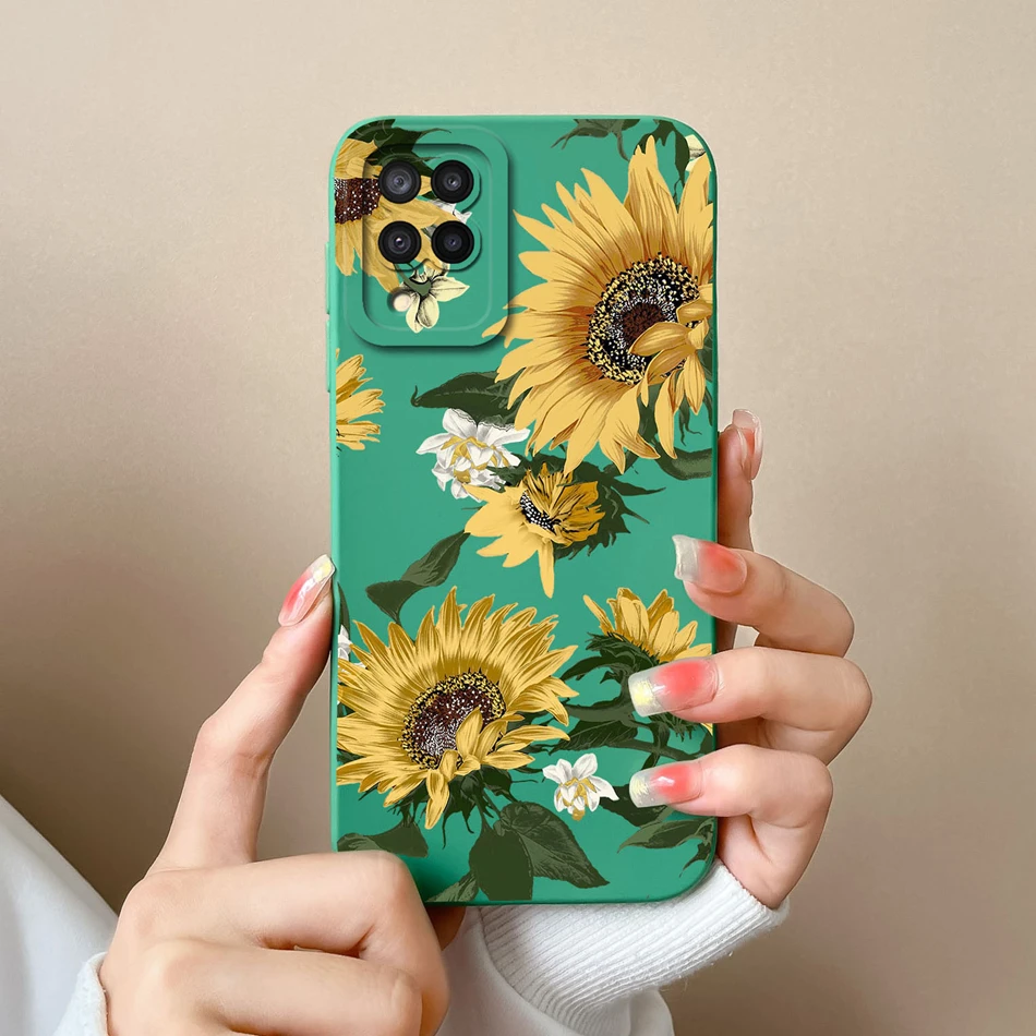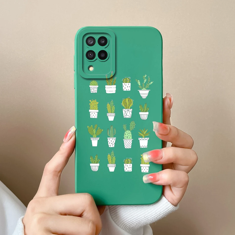Comprar Funda de silicona líquida con flores pintadas para Samsung M22 M32, protección de lente, cubierta trasera de teléfono para Galaxy M 32 M 22