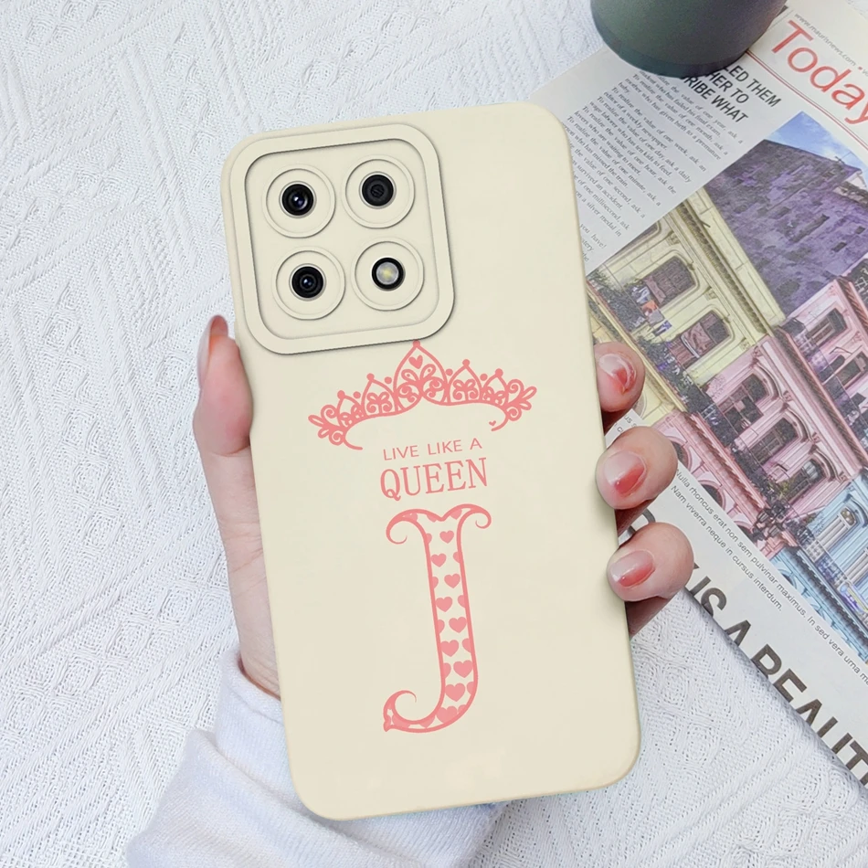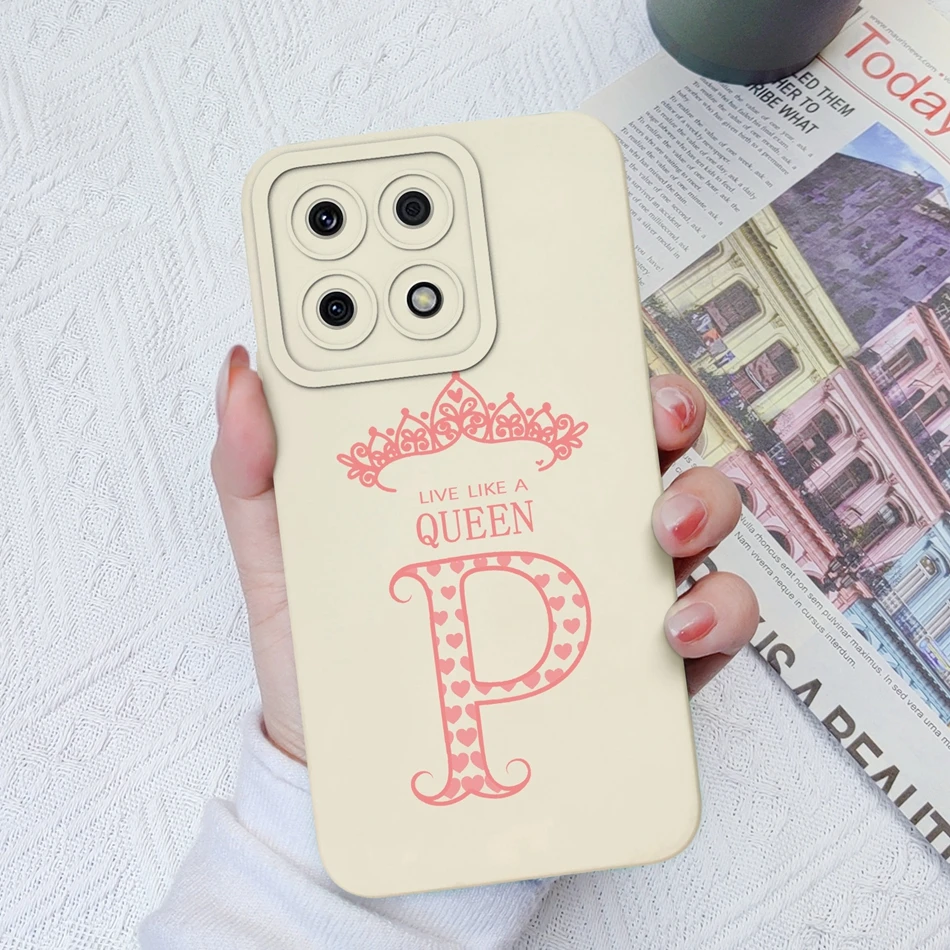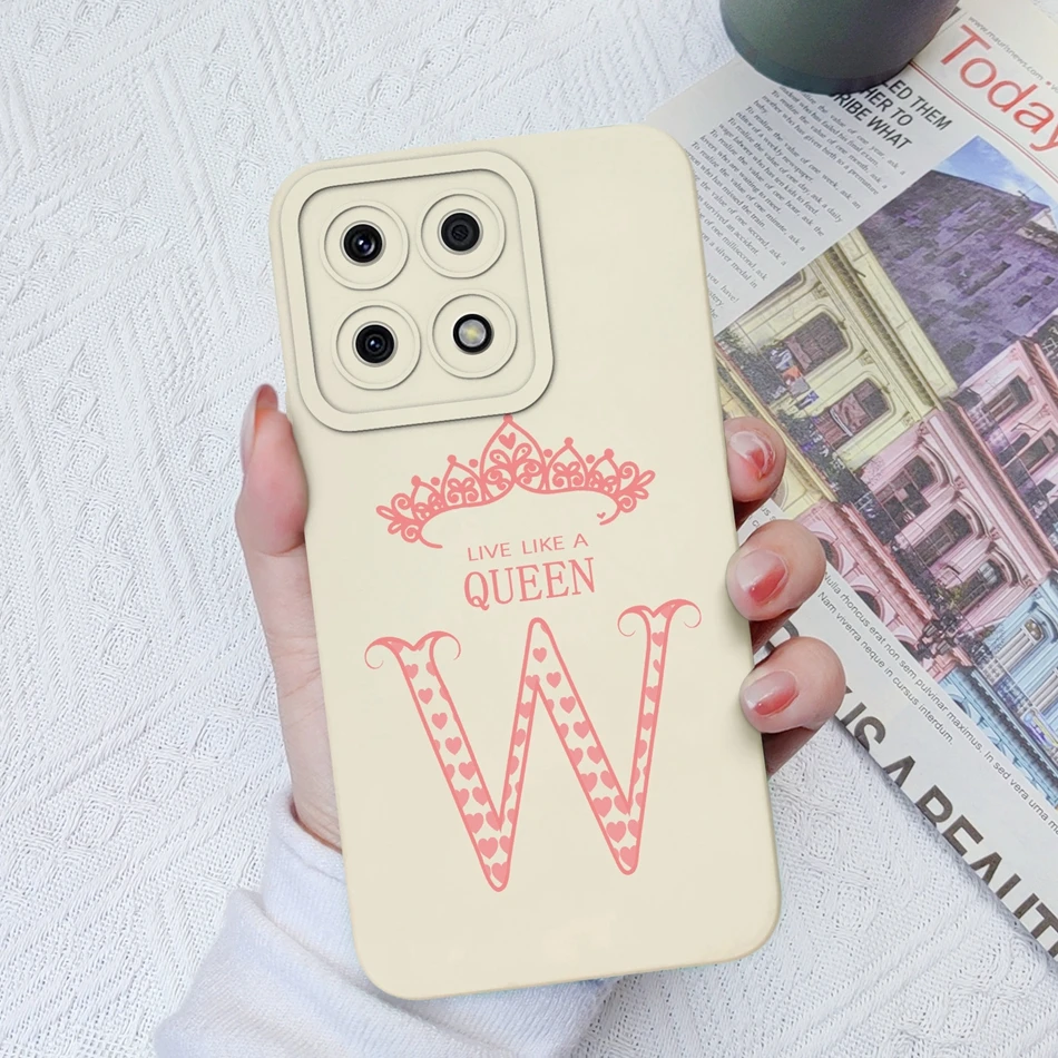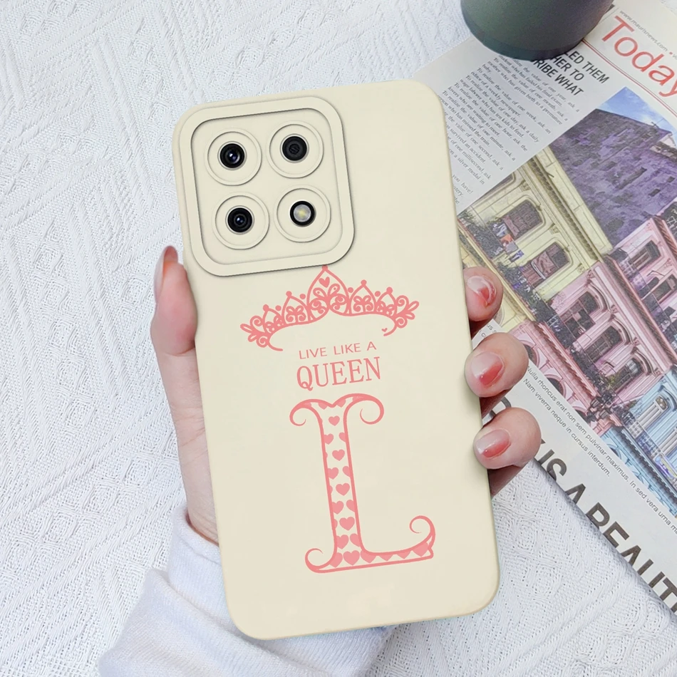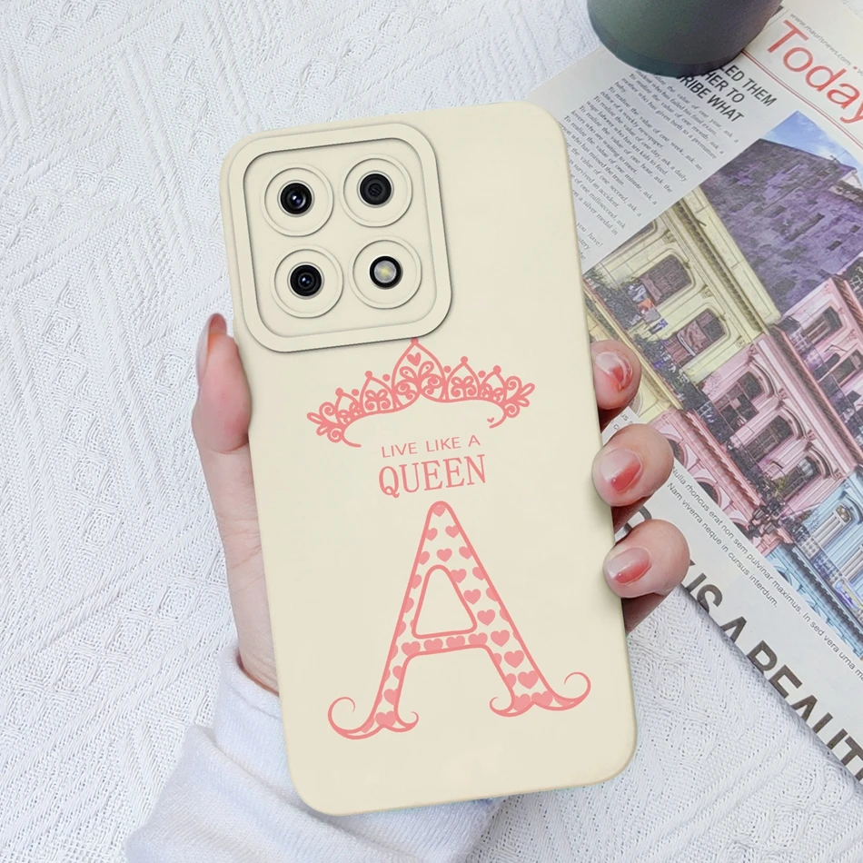 Funda para Honor X8 X7 X8A X7A, pareja de 26 letras, silicona líquida suave y suave, protección completa, funda trasera a prueba de golpes, parachoques