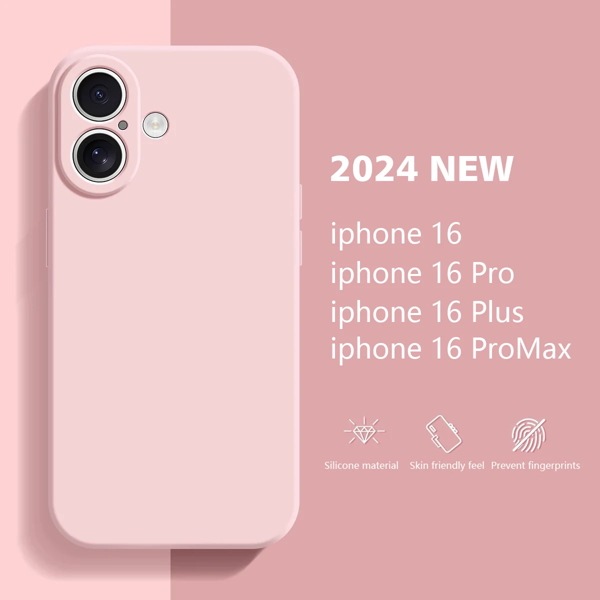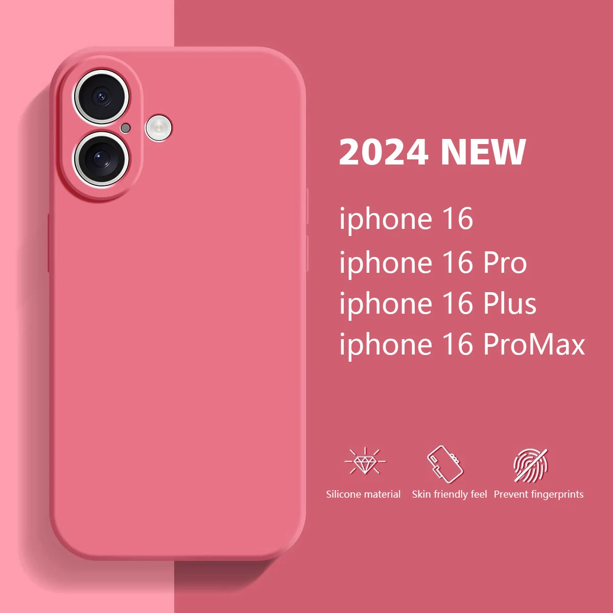 Comprar Funda de silicona líquida para iPhone 16 Pro Max, carcasa trasera suave para teléfono 11, 12, 13, 14, 15 Pro Plus, Mini, novedad de 2024