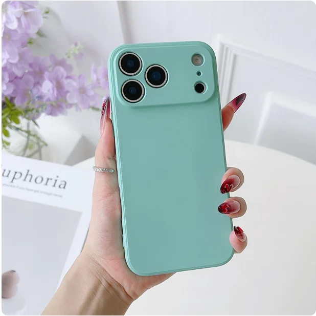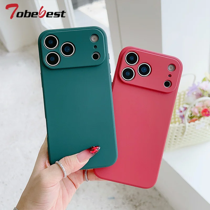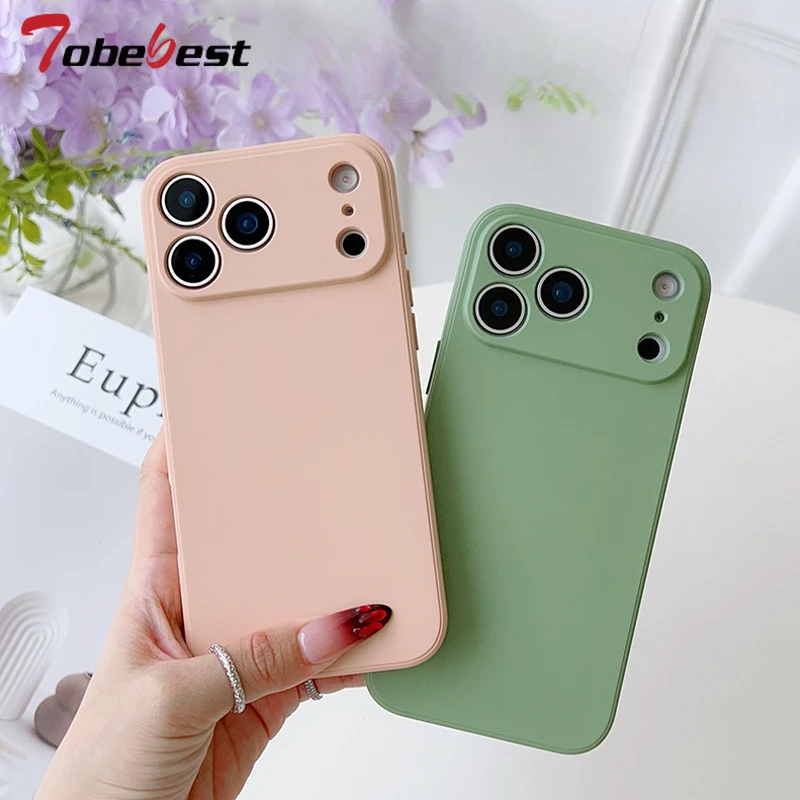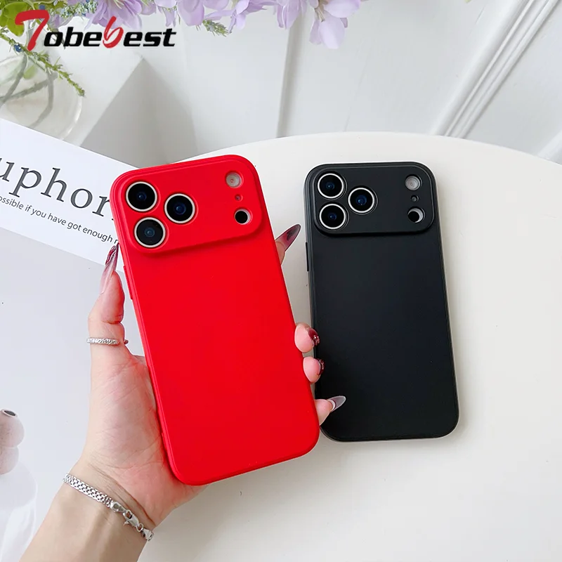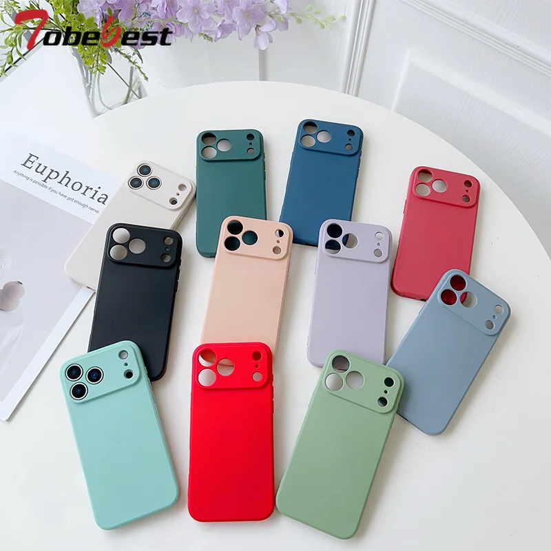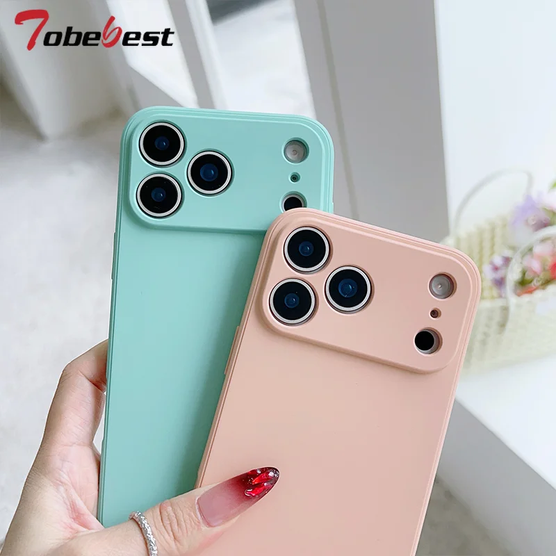 Funda de silicona líquida para iPhone 17 Air 16E 15 14 Plus 13 12 mini 11 Pro Max Coque Protector de marco Funda trasera de TPU suave